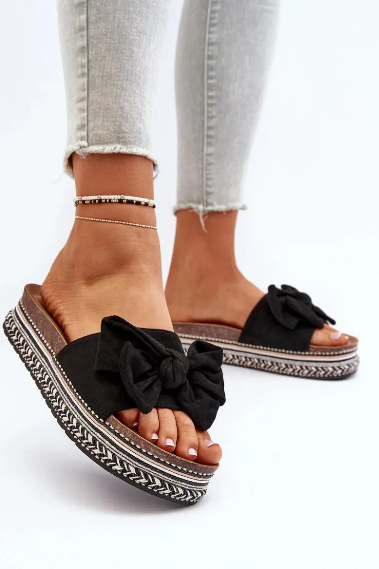 Klapki damskie na zdobionej platformie są nie tylko modne, ale także wyjątkowo wygodne. Wykonane z przyjemnego w dotyku eko zamszu, zapewniają one nie tylko atrakcyjny wygląd, ale także komfort noszenia. To ponadczasowy model, który doskonale podkreśli każdą letnią stylizację. Model ten posiada profilowaną wkładkę. Nie zapomnij zajrzeć także do naszej pełnej kolekcji damskich klapek! Przy wyborze rozmiaru prosimy sugerować się tabelą rozmiarów.