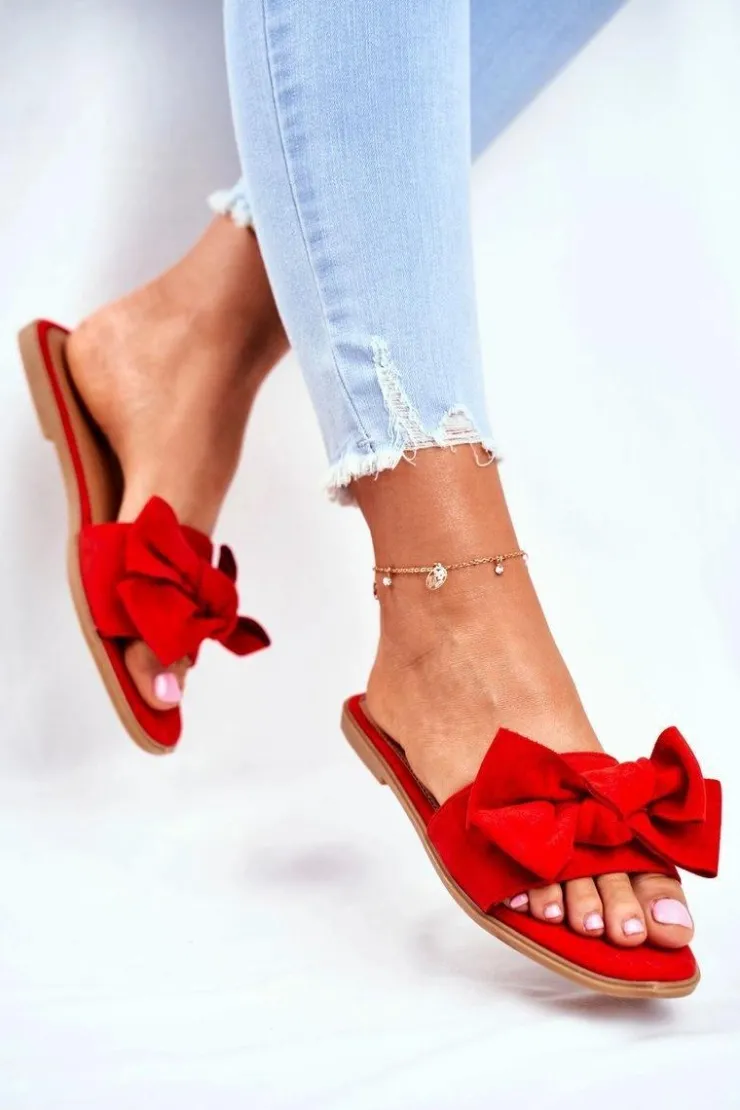Boto Klapki Damskie Z Kokardkami Czerwone Malaysia