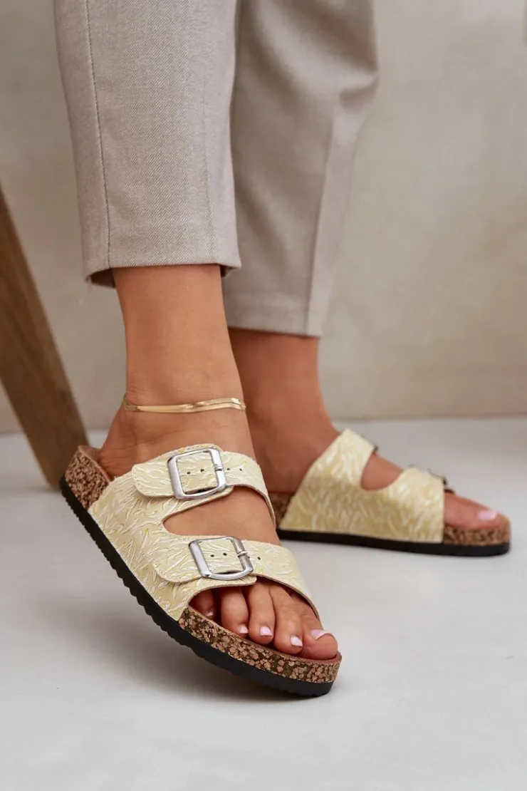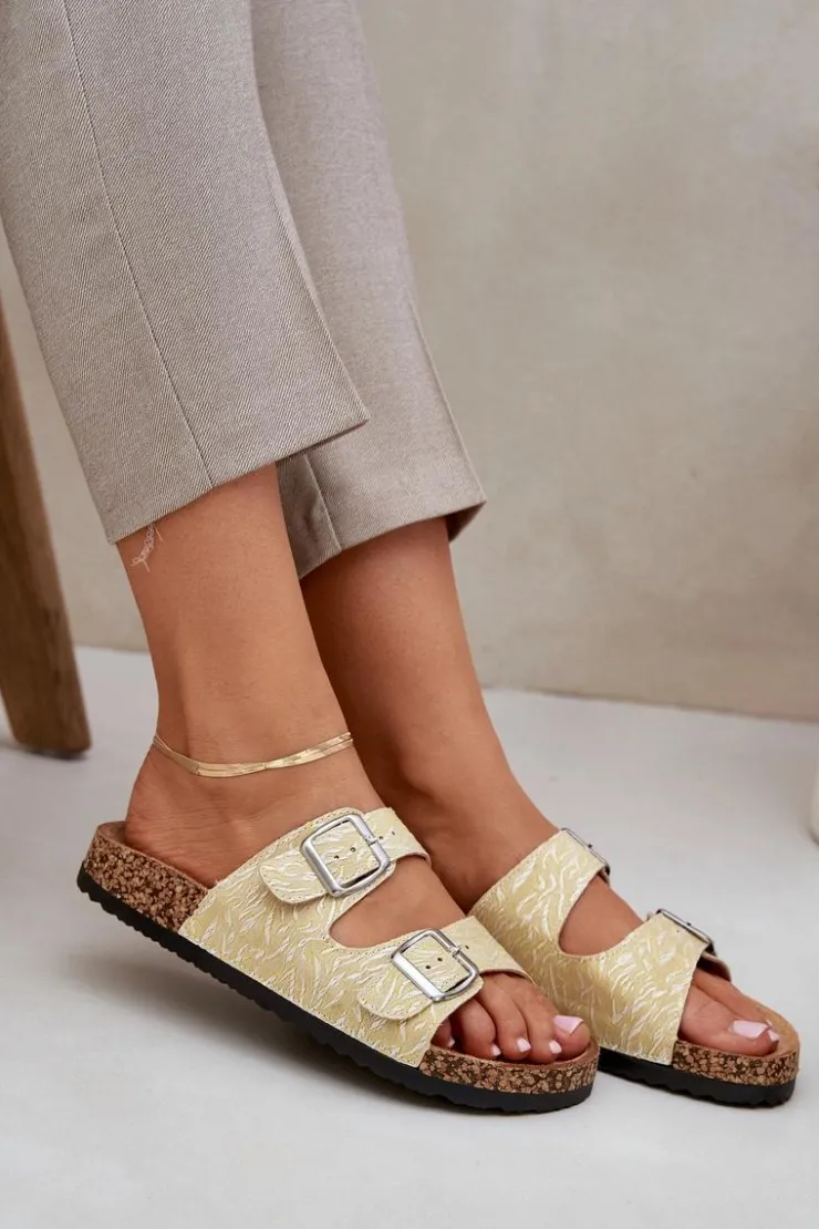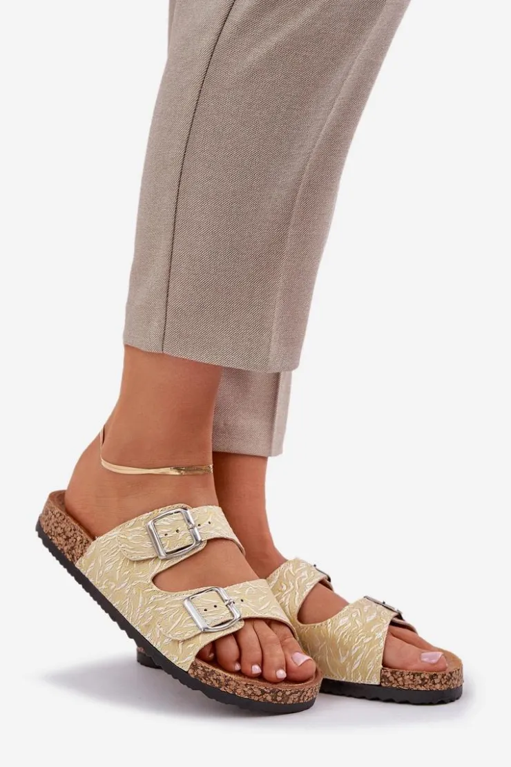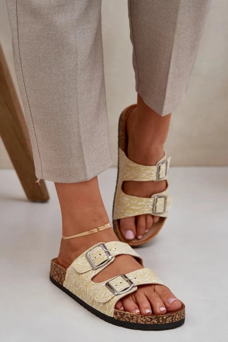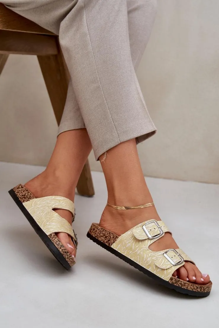 Klapki damskie wykonane z materiału tekstylnego, to doskonała propozycja na ciepłe dni. Dwa paski z klamrami zapewniają łatwe dopasowanie do stopy, a korkowa podeszwa dodaje lekkości i modnego charakteru. Profilowana wkładka gwarantuje wygodę przez cały dzień, czyniąc te klapki idealnym wyborem na spacery czy wakacyjne wyjazdy. Komfort i styl w jednym! Przy wyborze rozmiaru rosimy sugerować się tabelą rozmiarów.