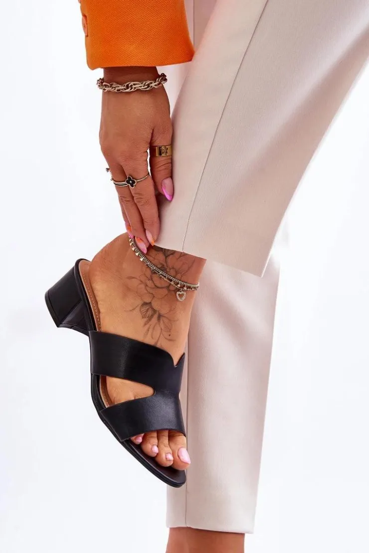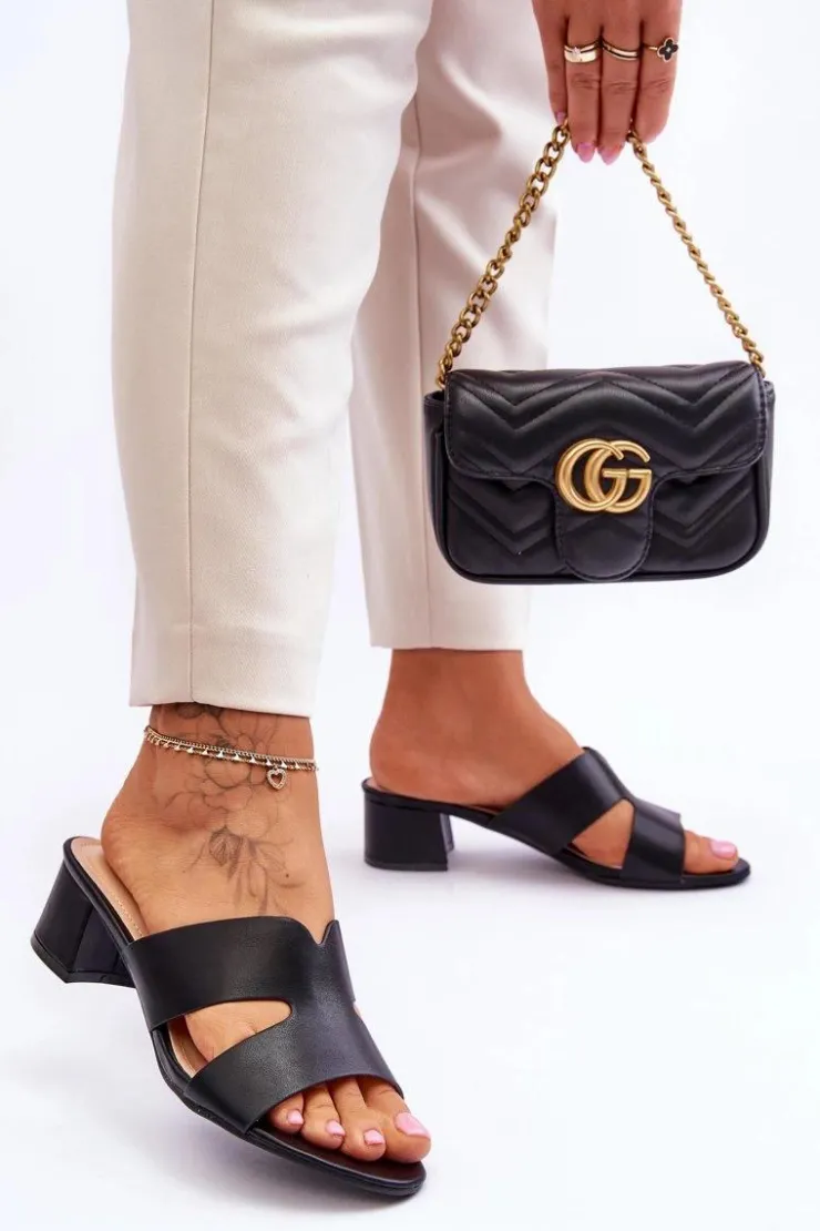 Boto Klapki Na Obcasie|Klapki Damskie Klasyczne*Klasyczne Skórzane Klapki Na Niskim Obcasie Czarne Miley