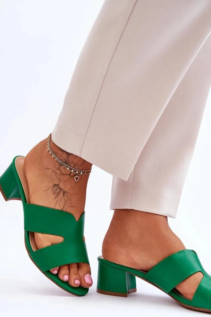 Boto Klapki Na Obcasie|Klapki Damskie Klasyczne*Klasyczne Skórzane Klapki Na Niskim Obcasie Zielone Miley