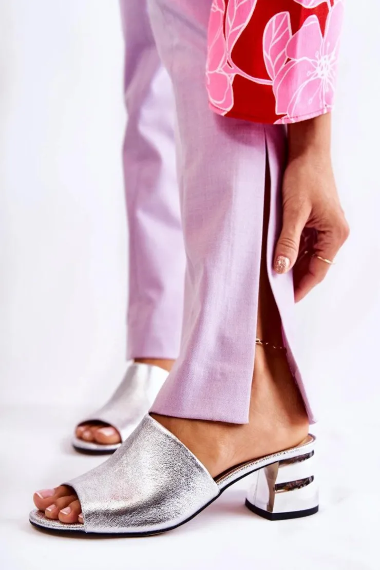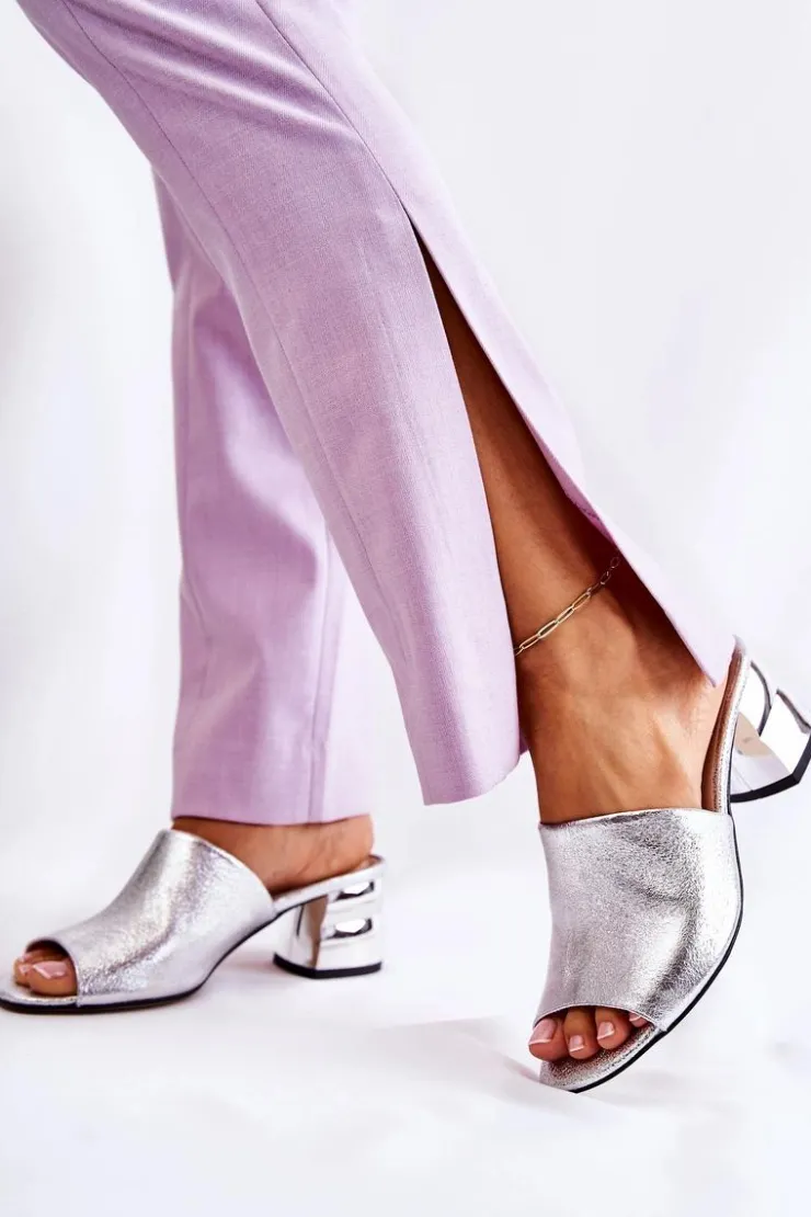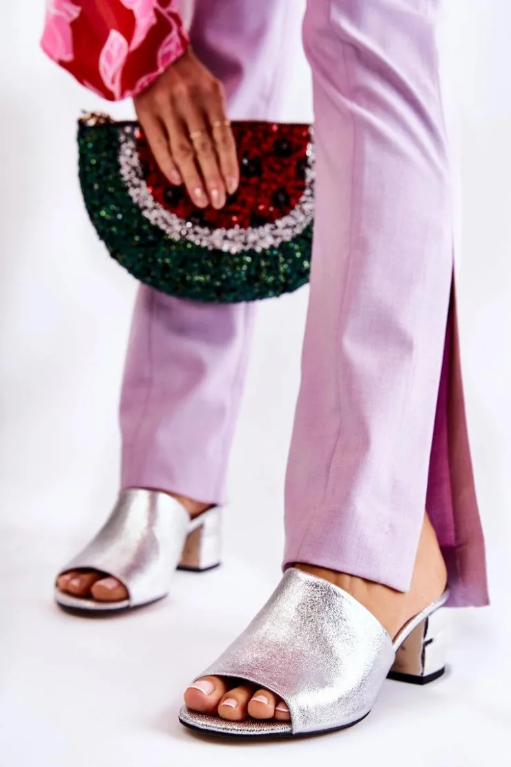 Boto Klapki Na Obcasie|Klapki Damskie Klasyczne*Skórzane Klapki Damskie Na Obcasie Srebrne Perry