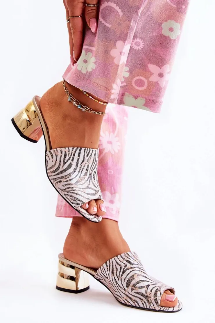 Modne, a zarazem wygodne klapki damskie zostały osadzone na obcasie w postaci klocka. Cholewka wykonana z naturalnej skóry. Nosek odkryty, zaokrąglony. Miękka wkładka została wykonana z naturalnej skóry. Model klasyczny, wsuwany. Świetnie sprawdzą się do wielu stylizacji. Idealnie dopasują się do tęgości nogi, dzięki skórzanej wyściółce. Spraw sobie radość kupując nową parę butów, które będą idealne na letnie dni! Przy wyborze rozmiaru prosimy sugerować się tabelą rozmiarów.