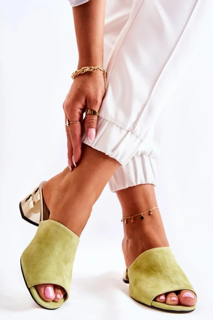 Modne, a zarazem wygodne klapki damskie zostały osadzone na obcasie w postaci klocka. Cholewka wykonana z naturalnego zamszu. Nosek odkryty, zaokrąglony. Miękka wkładka została wykonana z naturalnej skóry. Model klasyczny, wsuwany. Świetnie sprawdzą się do wielu stylizacji. Idealnie dopasują się do tęgości nogi, dzięki skórzanej wyściółce. Spraw sobie radość kupując nową parę butów, które będą idealne na letnie dni! Przy wyborze rozmiaru prosimy sugerować się tabelą rozmiarów.