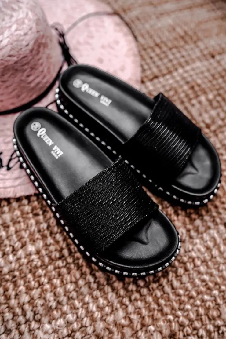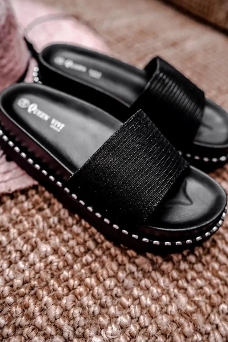 Boto Klapki Na Platformie|Klapki Damskie Klasyczne*Damskie Klapki na Platformie Czarne Srebrne Venima