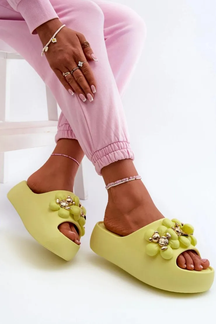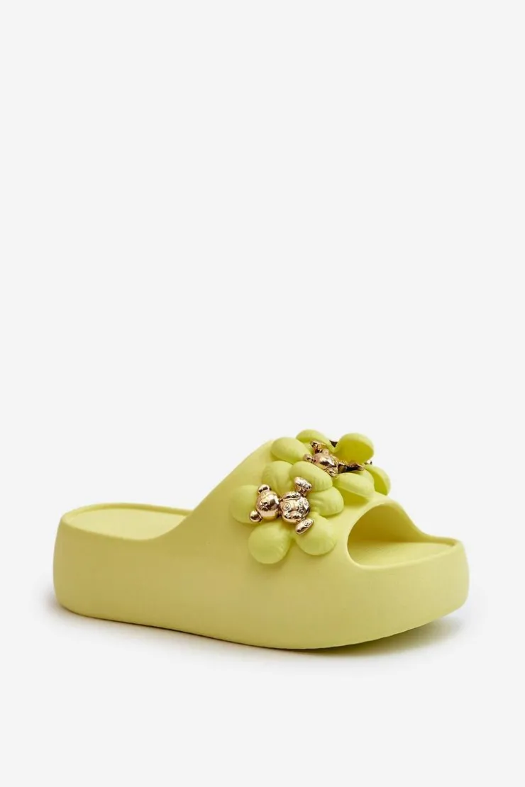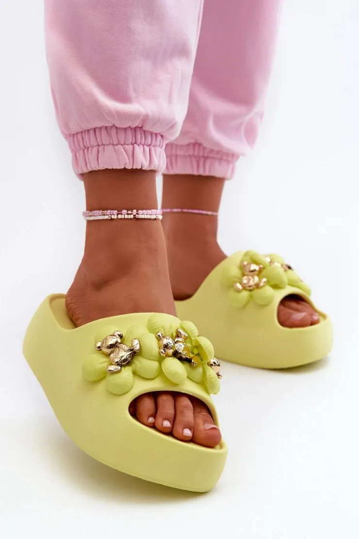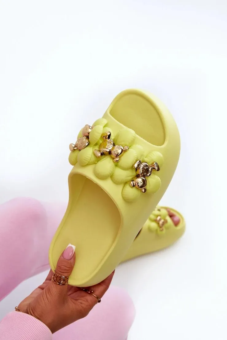 Lekkie damskie klapki wykonane z piankowego tworzywa, idealne na upalne dni. Osadzone na masywnej podeszwie, te klapki zapewniają wygodę i stabilność. Urocze ozdoby dodają im wyjątkowego charakteru, czyniąc je doskonałym wyborem na lato. Przy wyborze rozmiaru prosimy sugerować się tabelą rozmiarów.