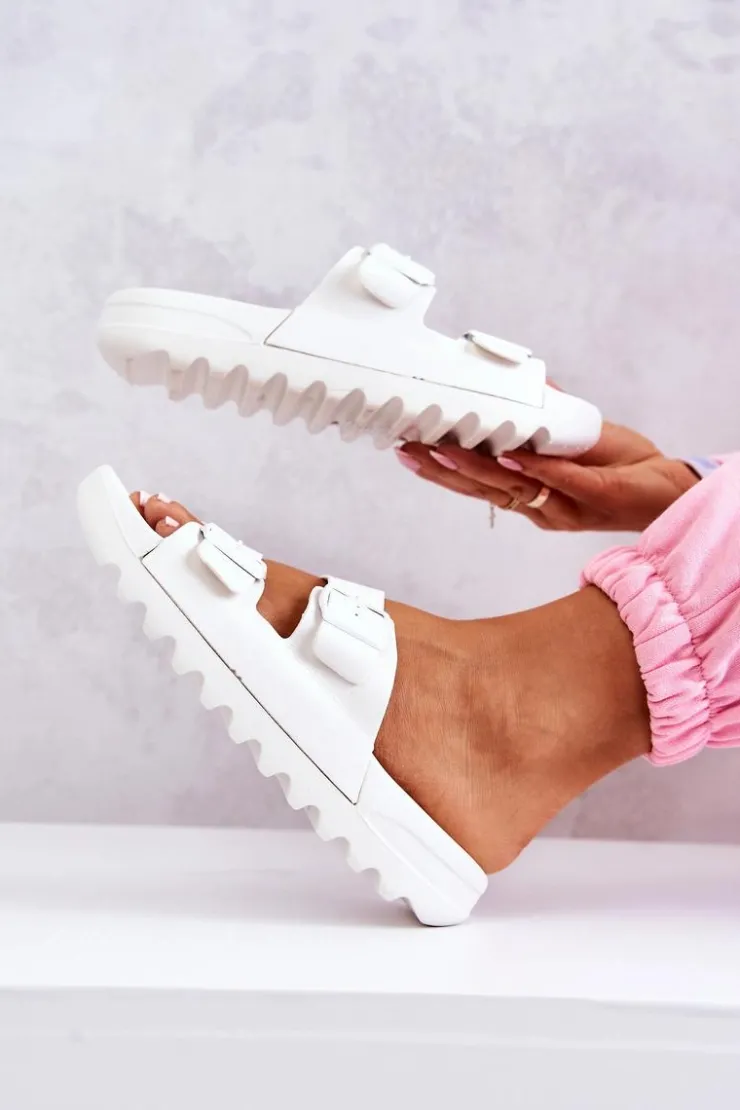 Klapki wykonane zostały z lekkiego gumowego tworzywa. Paski są regulowane, dlatego możesz odpowiednio je dopasować do stopy. Wykonane z eko skóry. Klapki posiadają wygodną, delikatnie profilowaną wkładkę. Świetnie sprawdzą się również jako domowe klapki. Koniecznie sprawdź całą naszą kolekcję klapek damskich! Przy wyborze rozmiaru prosimy sugerować się tabelą rozmiarów.