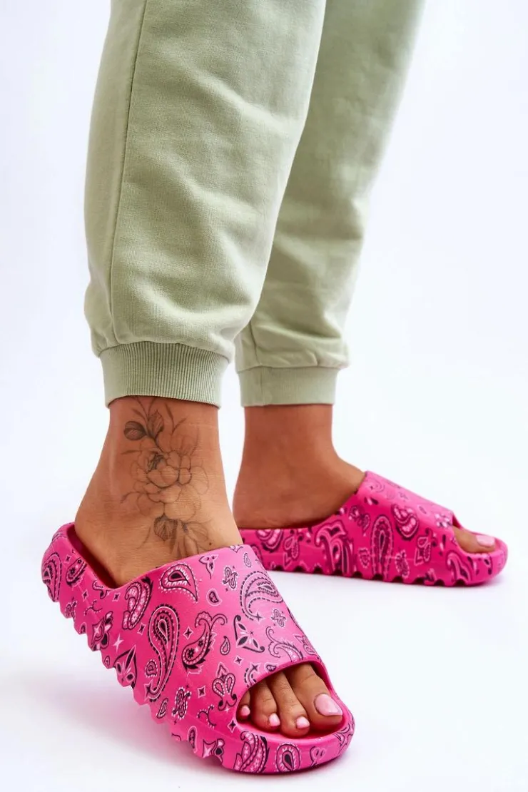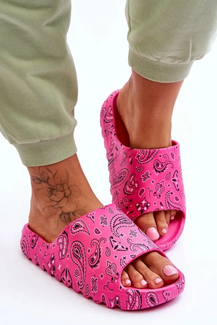 Te klapki powinny znaleźć się w Twojej szafie! Klapki zostały wykonane w całości z tworzywa sztucznego imitującego gumę. Model ten posiada modny, szeroki pasek. Na zewnętrznej stronie obuwia wykonano nadruk w ciekawe wzory. Klapki są idealne do codziennego użytkowania. Świetnie sprawdzą się zamiast papci czy jako klapki na basen. Niezwykle wygodny i komfortowy model. Po prostu musisz je mieć! Przy wyborze rozmiaru prosimy sugerować się tabelą rozmiarów.