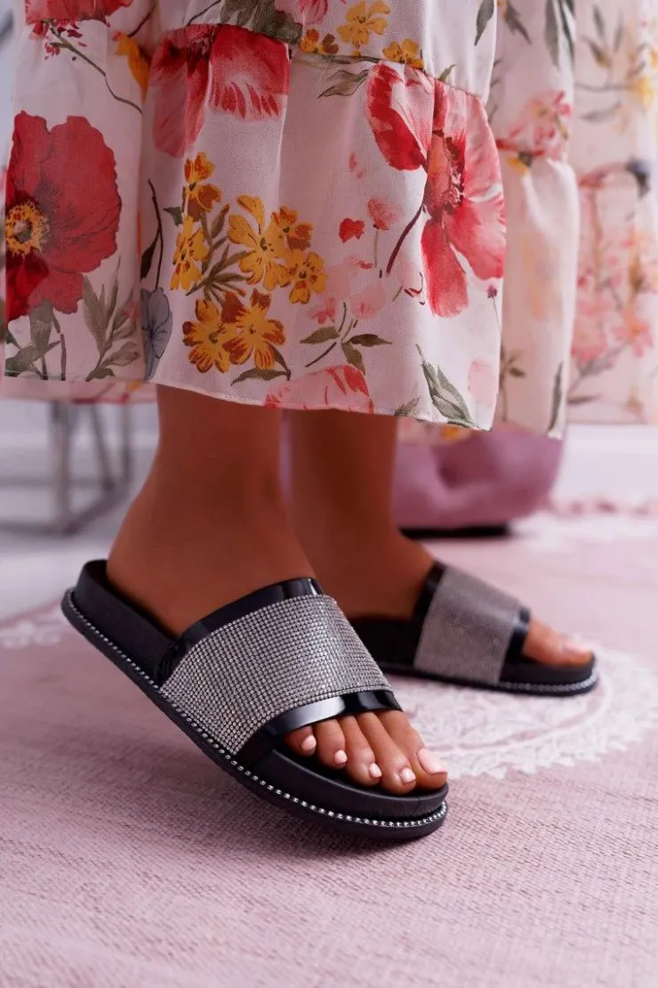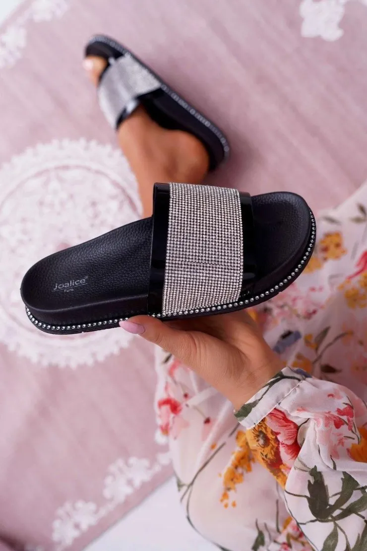 Boto Klapki Sportowe|Klapki Damskie Klasyczne*Klapki Damskie Profilowane Z Cyrkoniami Czarne Rentre