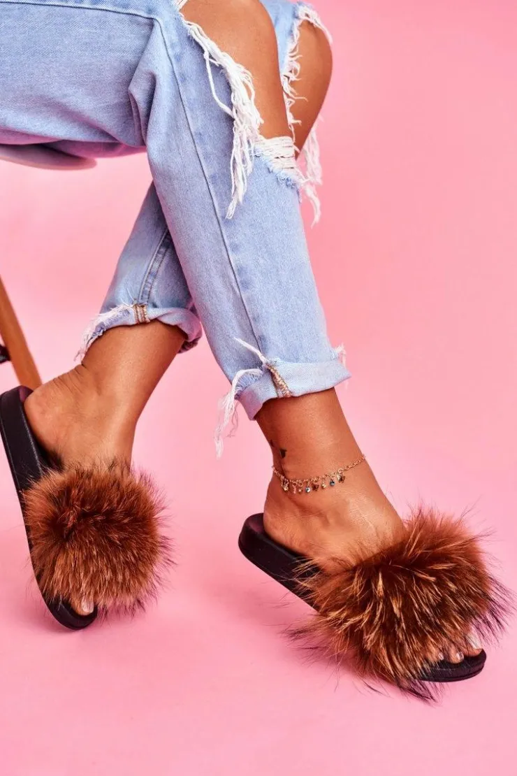 Klapki damskie z naturalnym futerkiem. Podeszwa wykonana jest z gumowego, lekkiego tworzywa. Delikatnie profilowana wkładka zadba o Twój komfort.