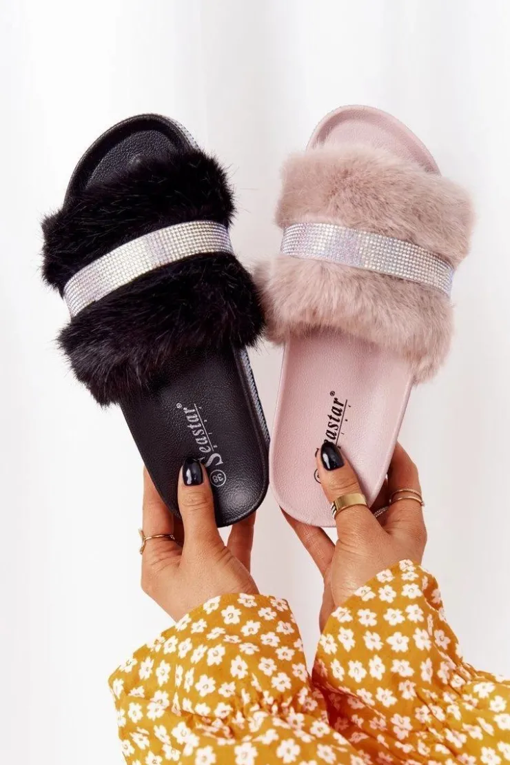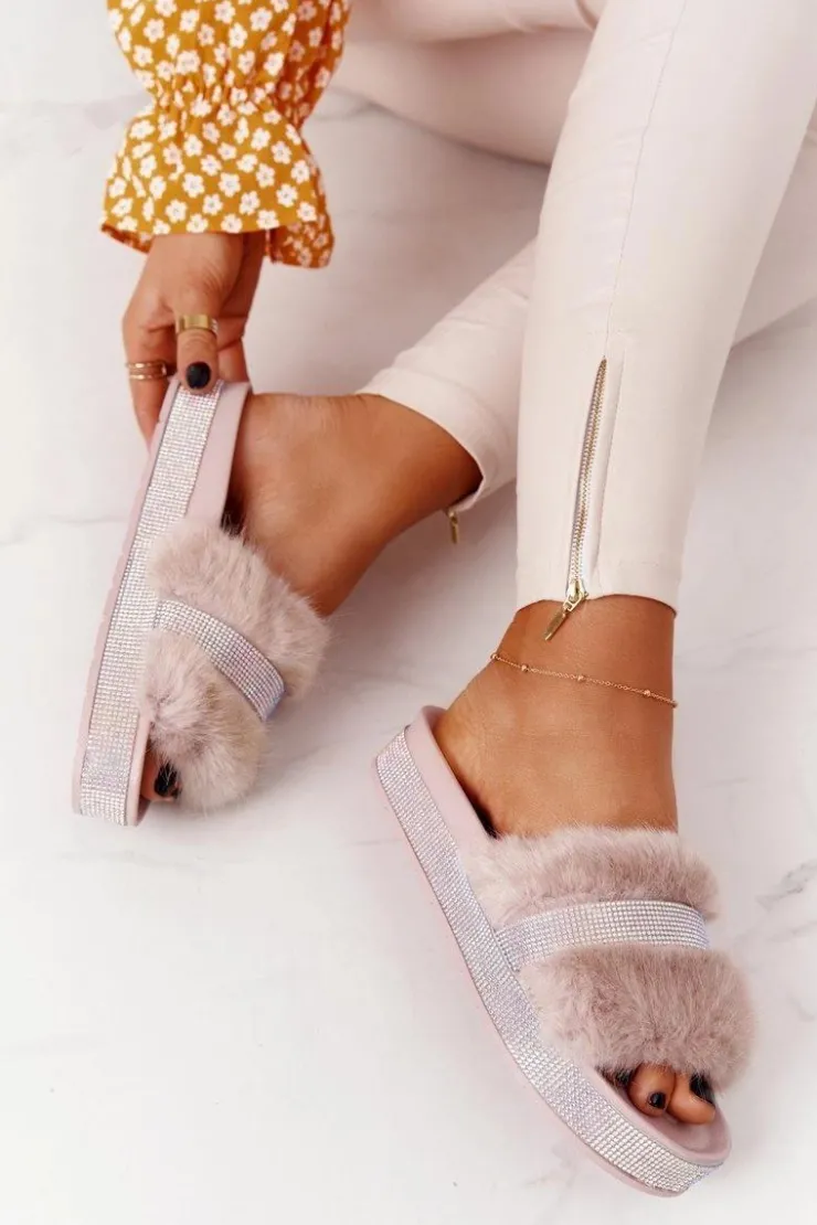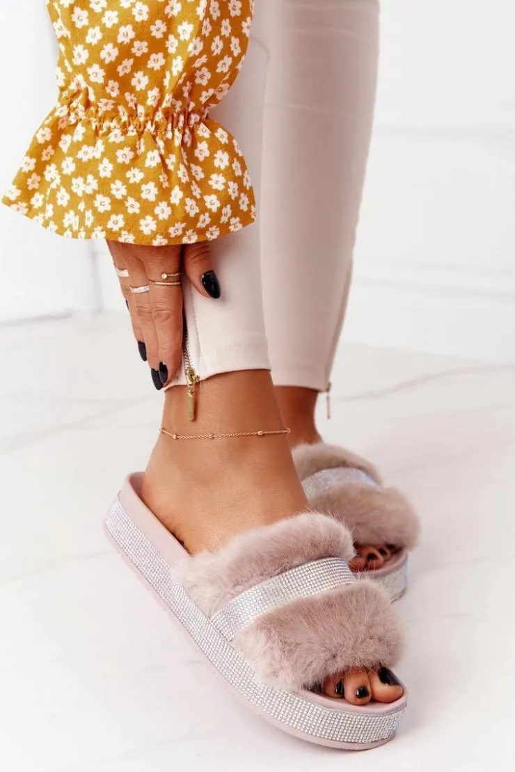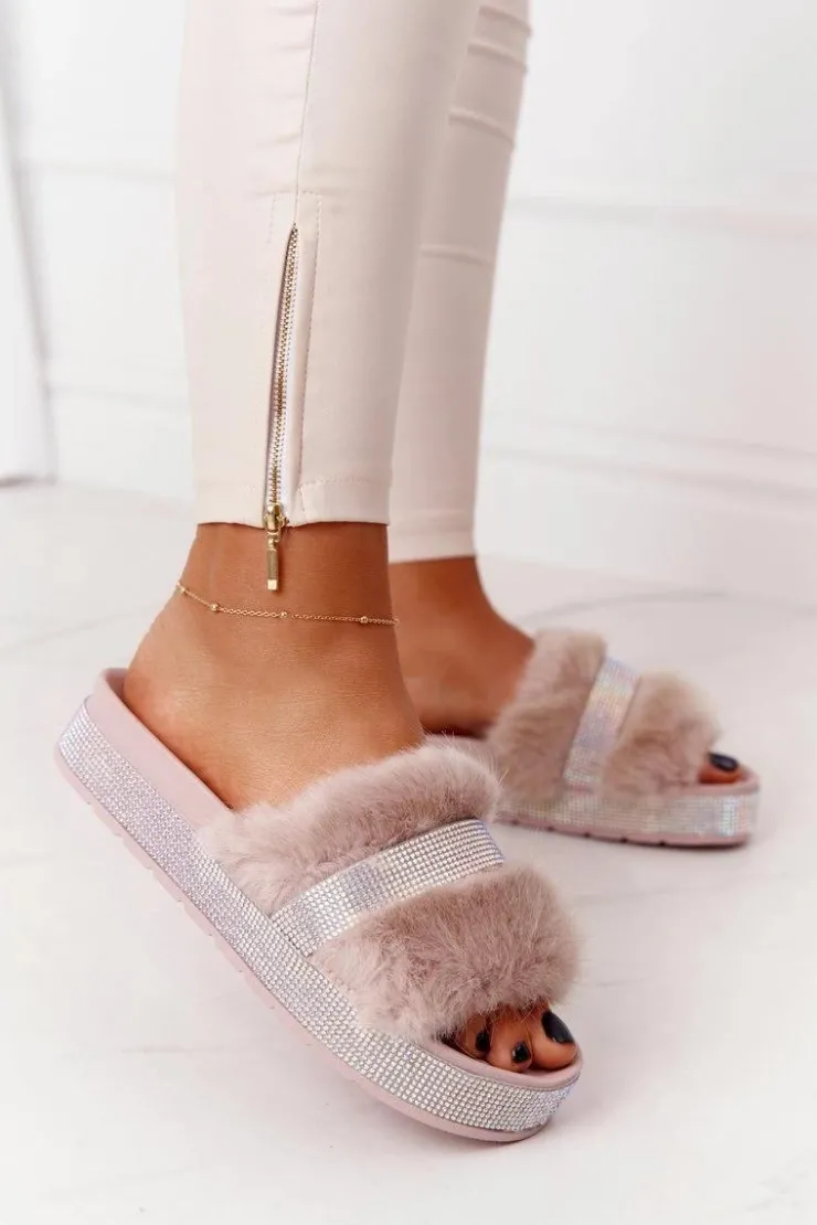 Boto Klapki Z Futerkiem|Klapki Na Platformie*Klapki Na Platformie Z Futerkiem I Cyrkoniami Beżowe Impress