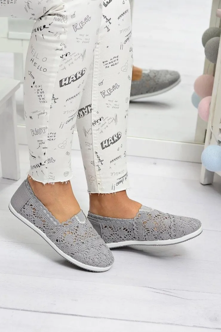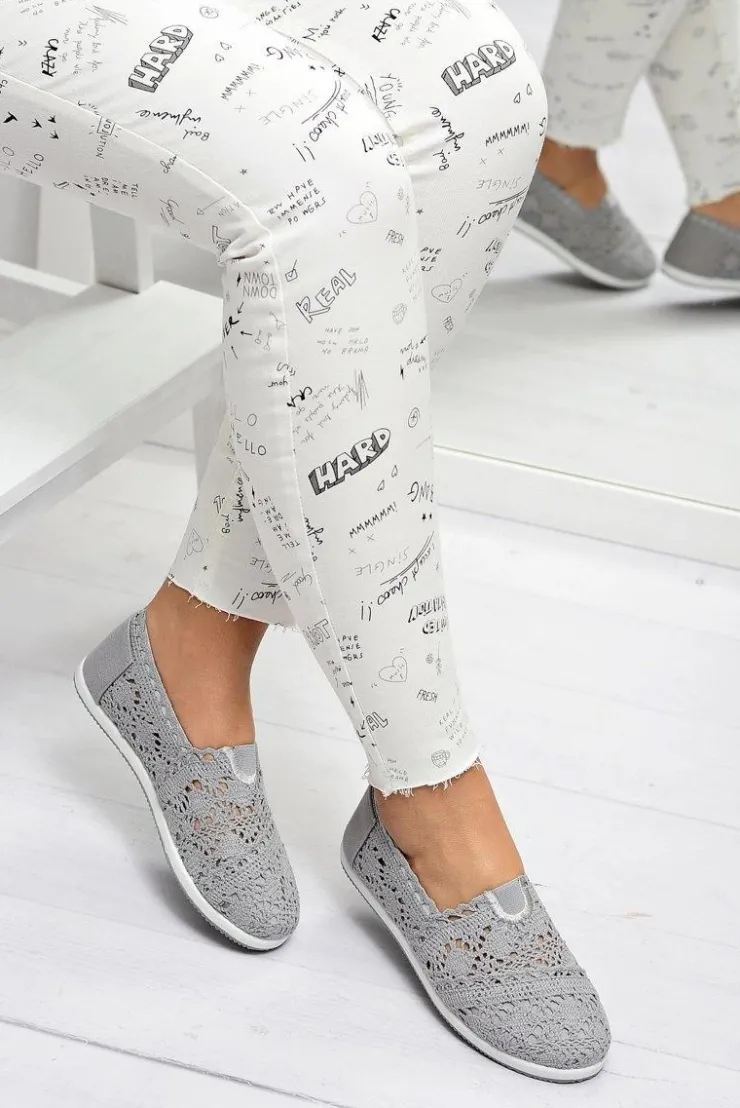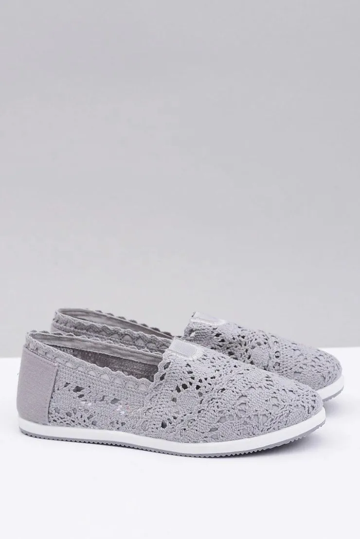 Boto Koronkowe Szare Damskie Baleriny Little Sugar
