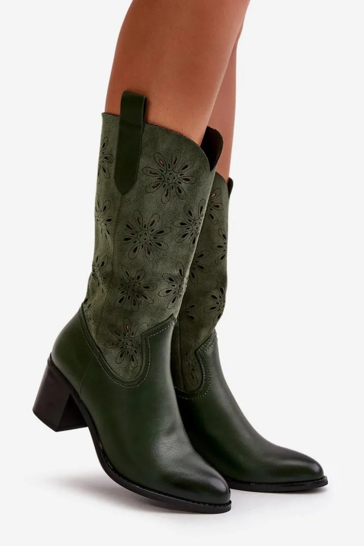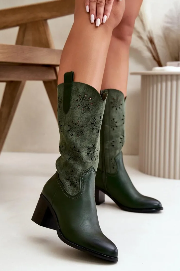 Kozaki damskie marki Jezzi to stylowy wybór na chłodniejsze dni. Wykonane z eko zamszu, charakteryzują się eleganckim designem, który podkreśla ich klasyczny wygląd. Noski w kształcie migdała dodają subtelnej elegancji. Ażurowa cholewka sięga do połowy łydki. Środek buta ocieplony jest wyłącznie na wysokości stopy. Te kozaki doskonale sprawdzą się zarówno w codziennych, jak i bardziej eleganckich stylizacjach, dodając im stylowego akcentu. Przy wyborze rozmiaru prosimy sugerować się tabelą rozmiarów.