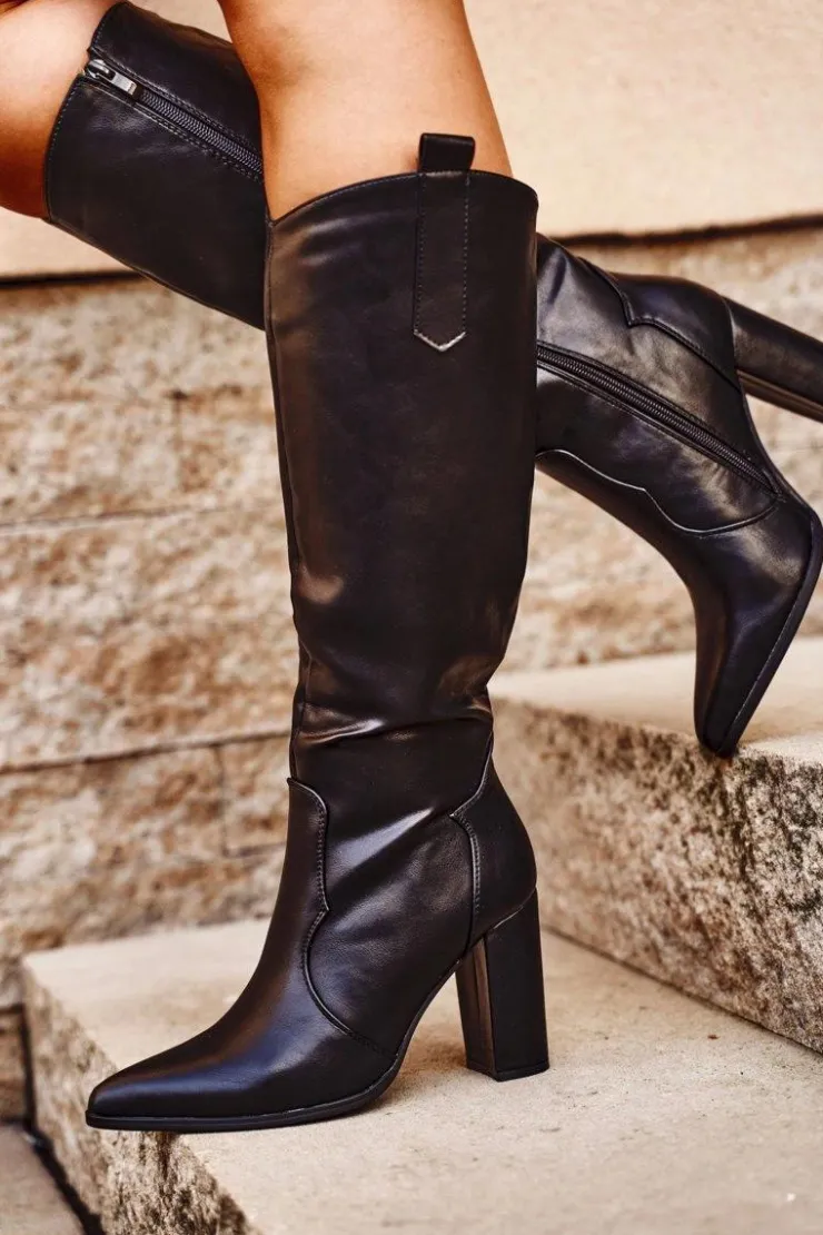 Boto Kozaki Na Obcasie*Kozaki Damskie Na Słupku Lico Czarne Forever
