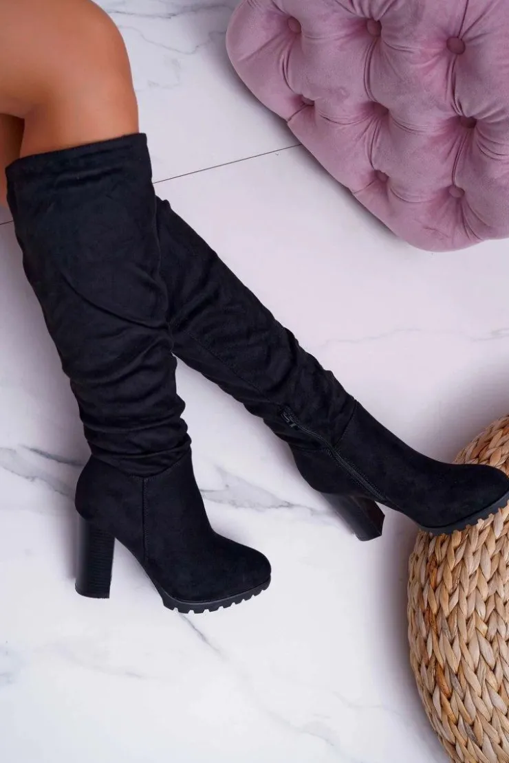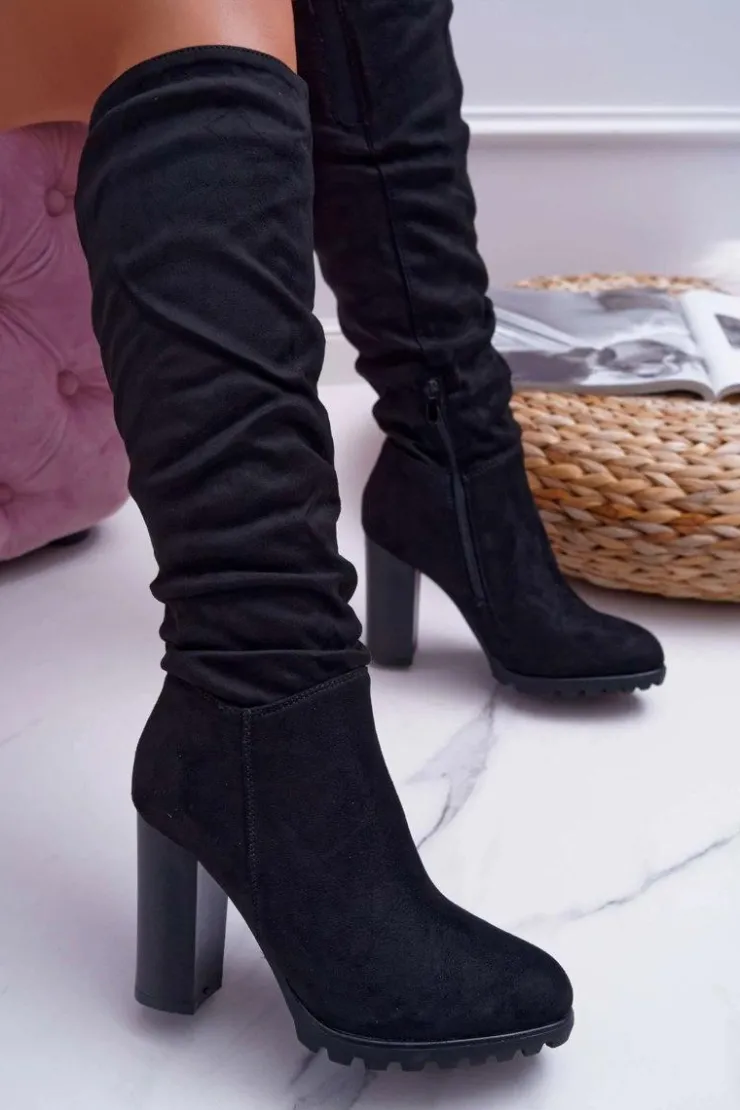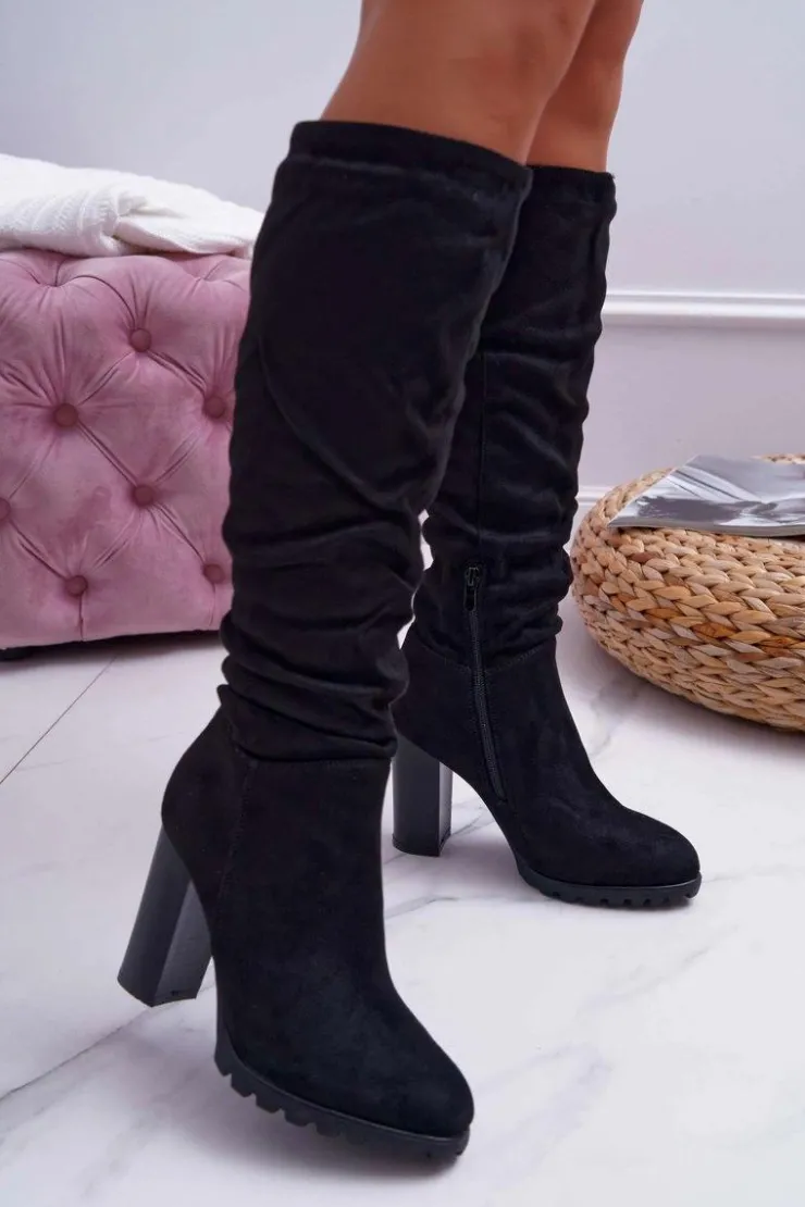 Boto Kozaki Na Obcasie|Kozaki Zamszowe*Kozaki Damskie Na Słupku Zamszowe Czarne Marion