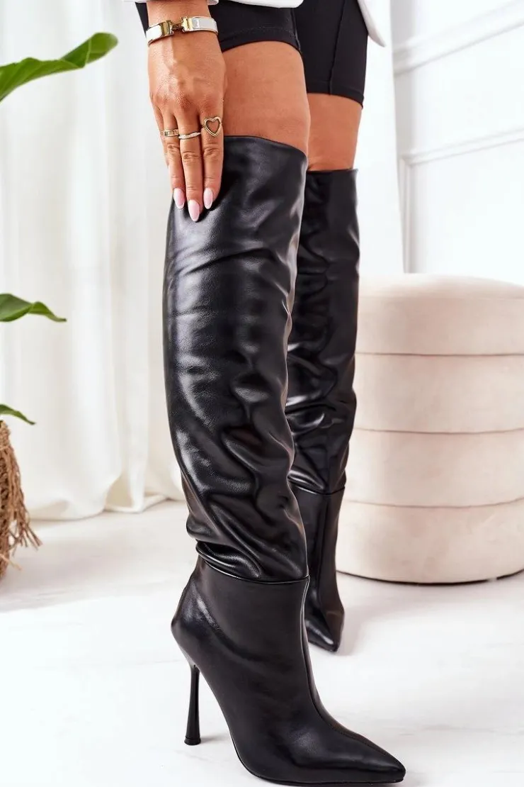 Piękne kozaki na szpilce wykonane z eko skóry. Buty ocieplone są kocem obuwniczym.Przy wyborze rozmiaru prosimy sugerować się tabelą rozmiarów.