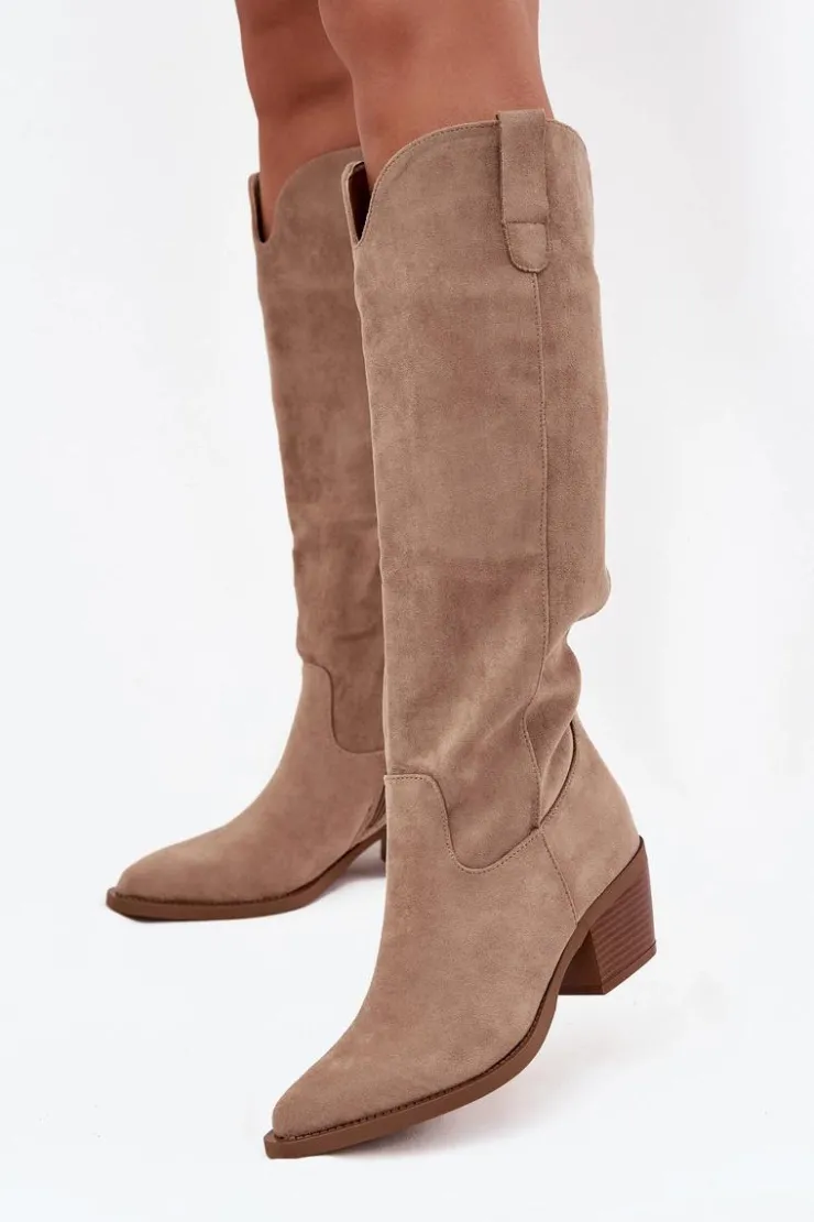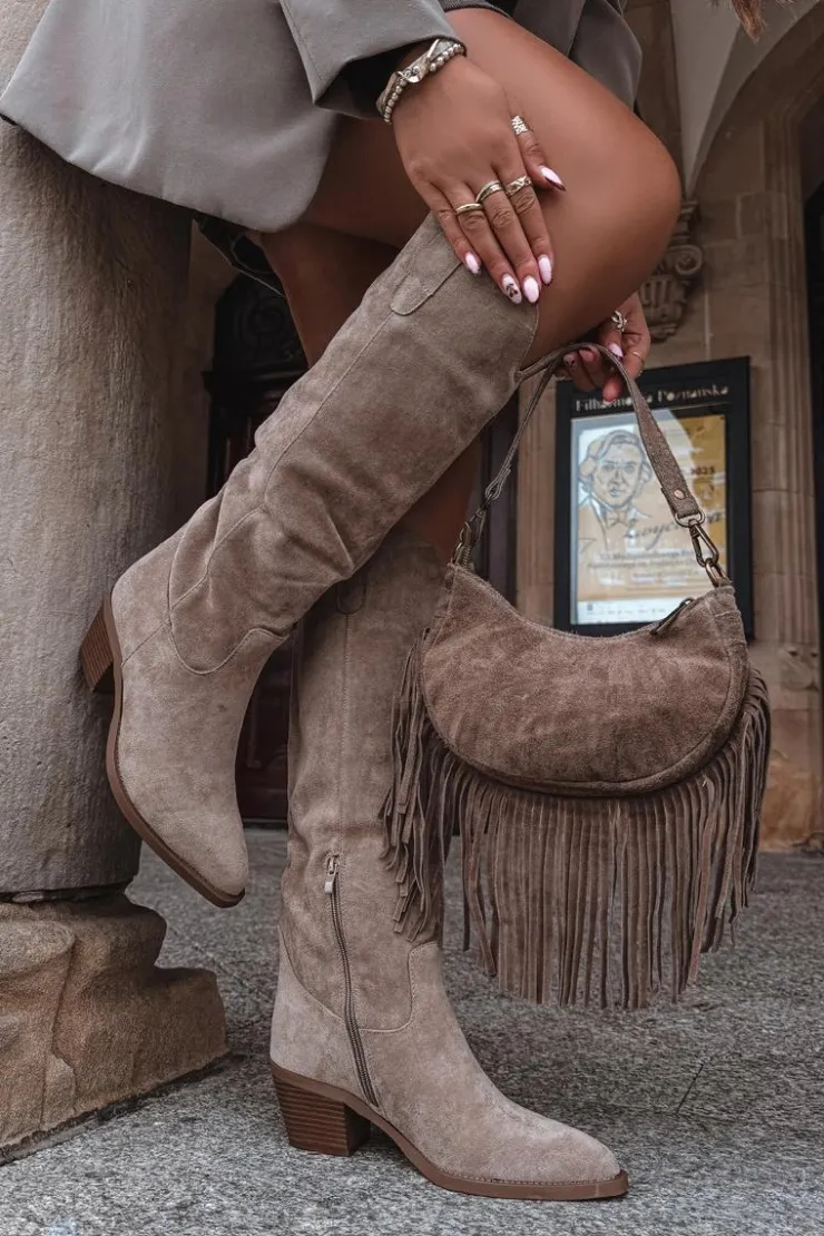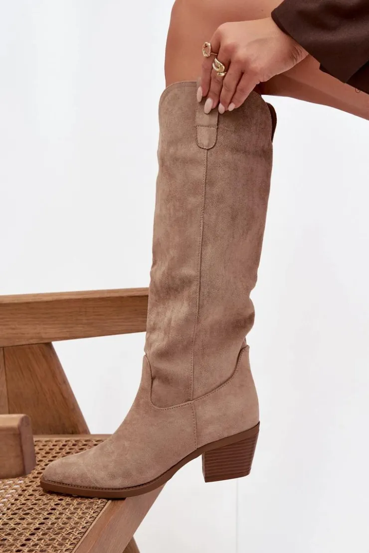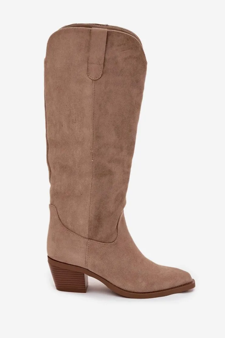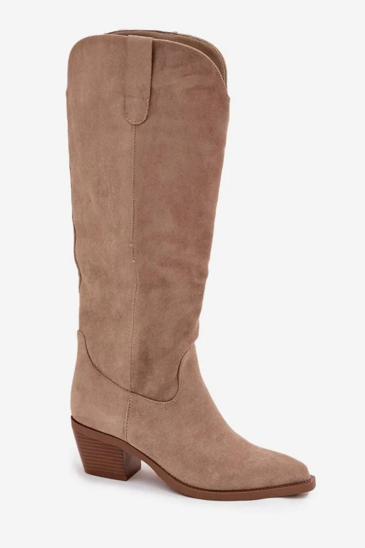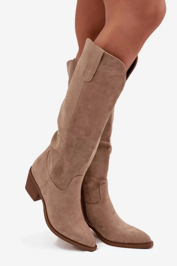 Kozaki damskie w stylu kowbojek, wykonane z eko zamszu. Osadzone na charakterystycznym, ściętym obcasie, dodają sylwetce lekkości i podkreślają kobiecy styl. Migdałowe noski nadają całości subtelności, a wsuwany fason z dodatkowym zapięciem na zamek zapewnia wygodę zakładania i idealne dopasowanie do nogi. To model, który doskonale wpisuje się w aktualne trendy – świetnie prezentuje się zarówno z sukienkami i spódnicami, jak i z dopasowanymi spodniami typu skinny. Stylowe i uniwersalne, staną się efektownym uzupełnieniem jesienno-zimowych stylizacji. Przy wyborze rozmiaru prosimy sugerować się poniższą tabelą rozmiarów.
