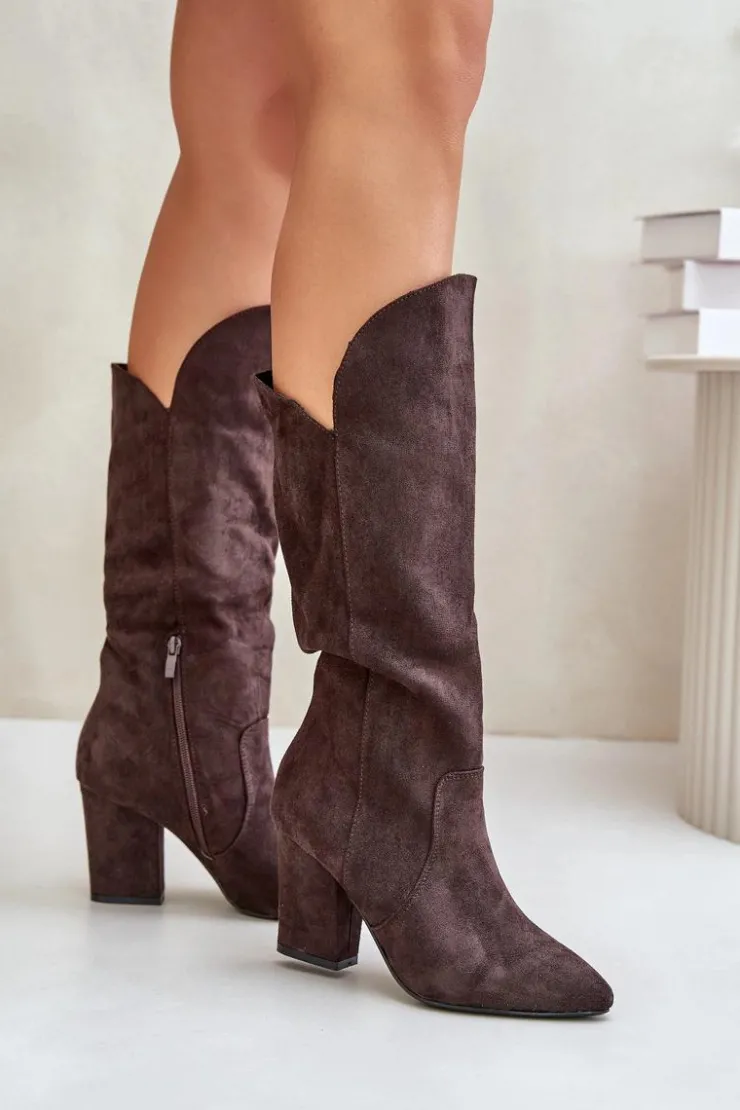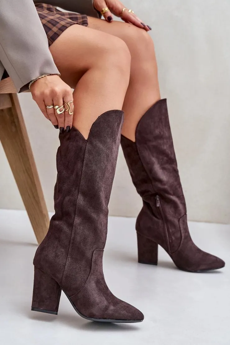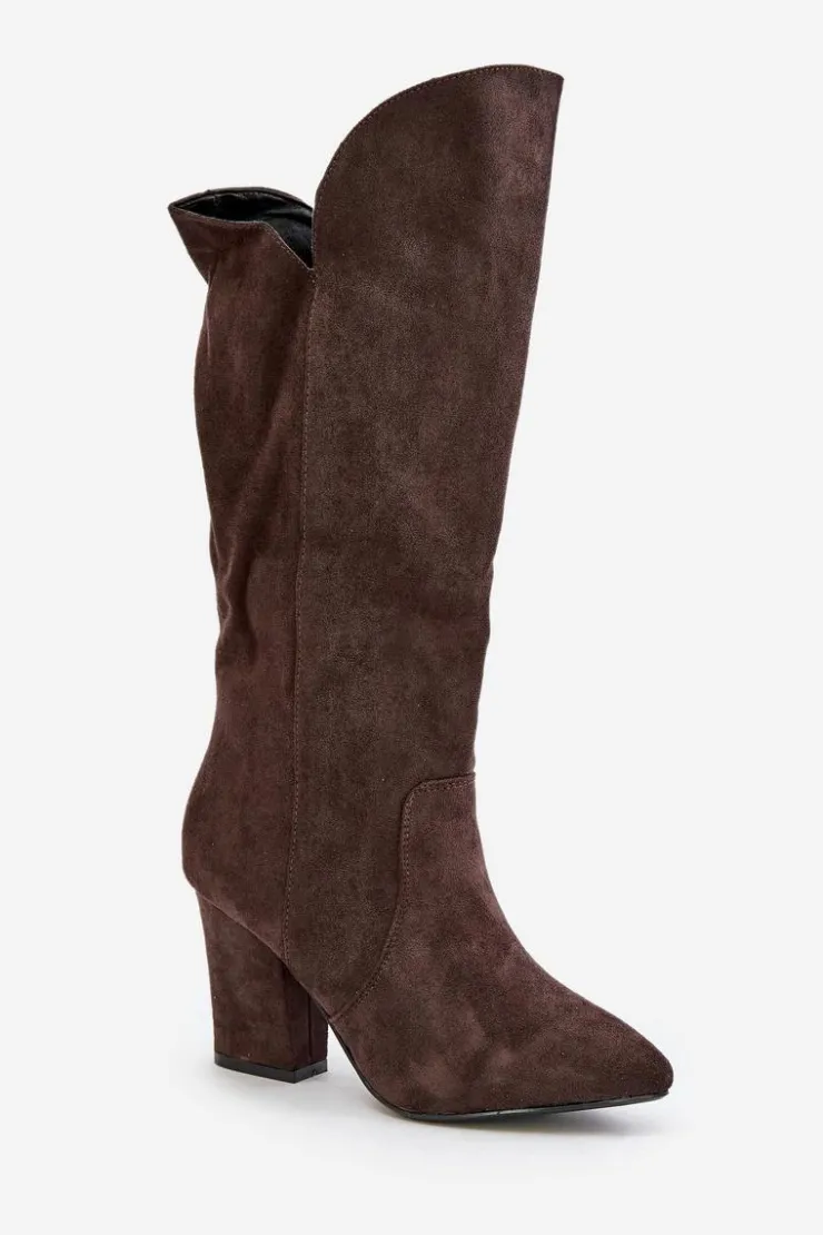 Kozaki z eko zamszu na obcasie typu słupek to elegancka propozycja na chłodniejsze dni. Wsuwane, z dodatkowym zapięciem na zamek, zapewniają wygodę i doskonałe dopasowanie do nogi. Idealne do stylizacji zarówno na co dzień, jak i na bardziej formalne okazje. Przy wyborze rozmiaru prosimy sugerować się tabelą rozmiarów.