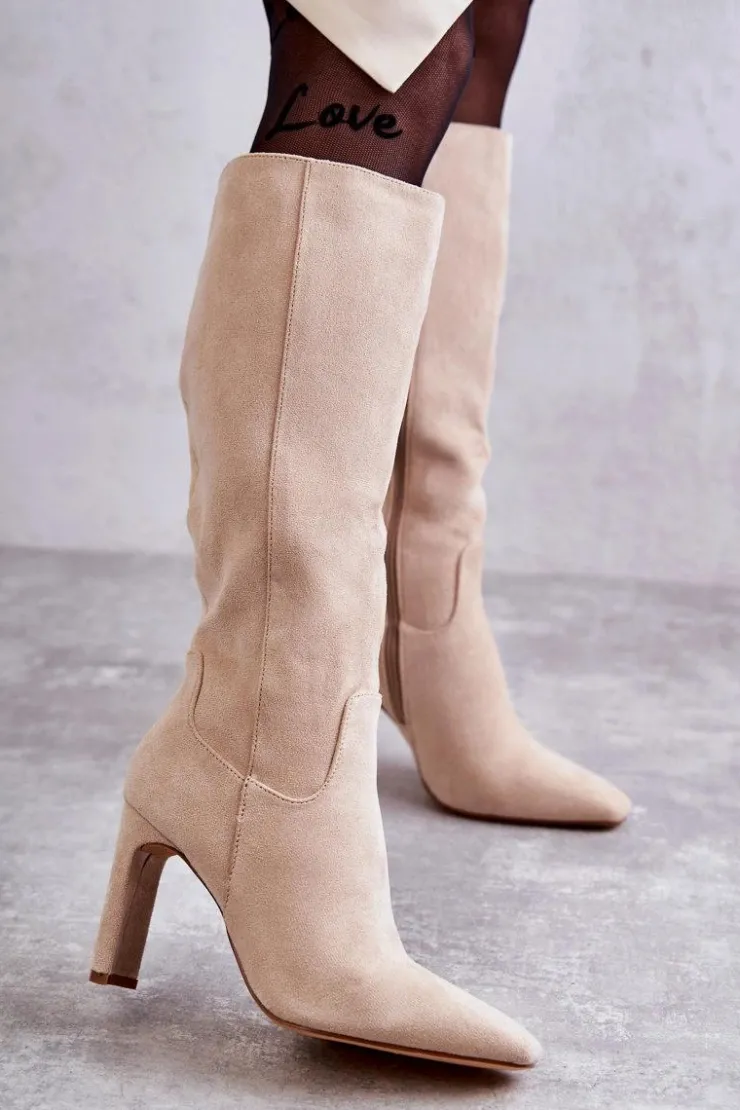 Boto Kozaki Na Słupku|Kozaki Wiosenne*Kozaki Damskie Na Słupku Do Kolana Beżowe Truly Love