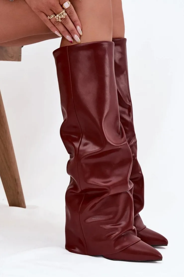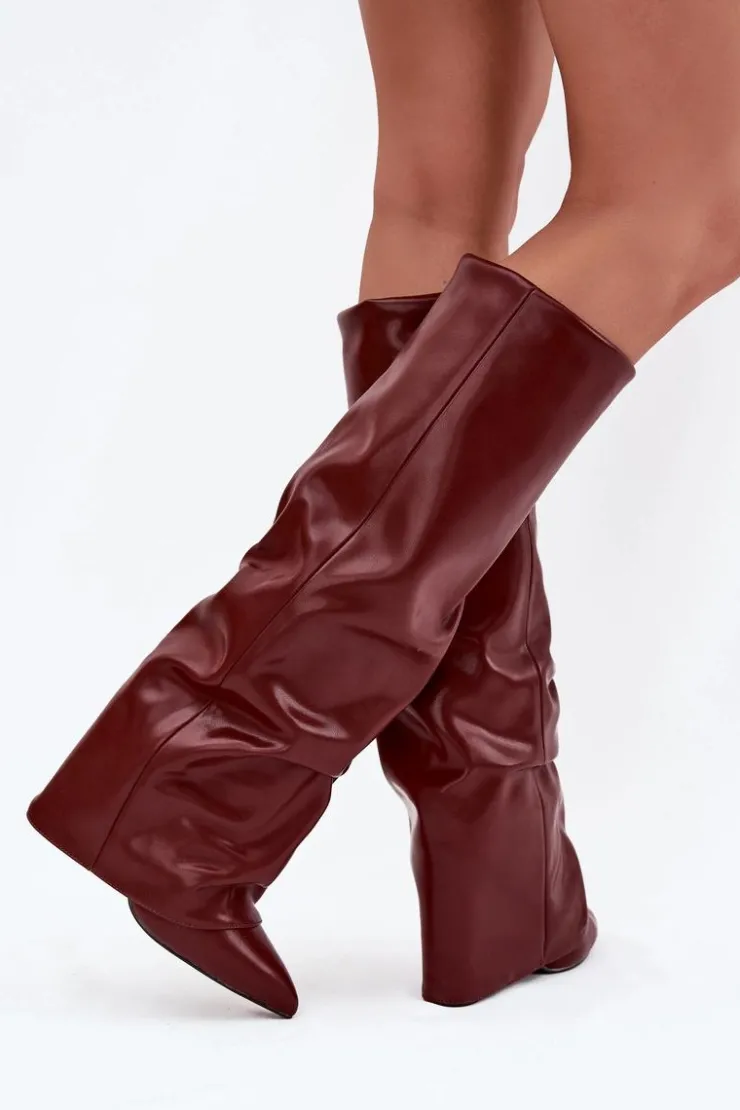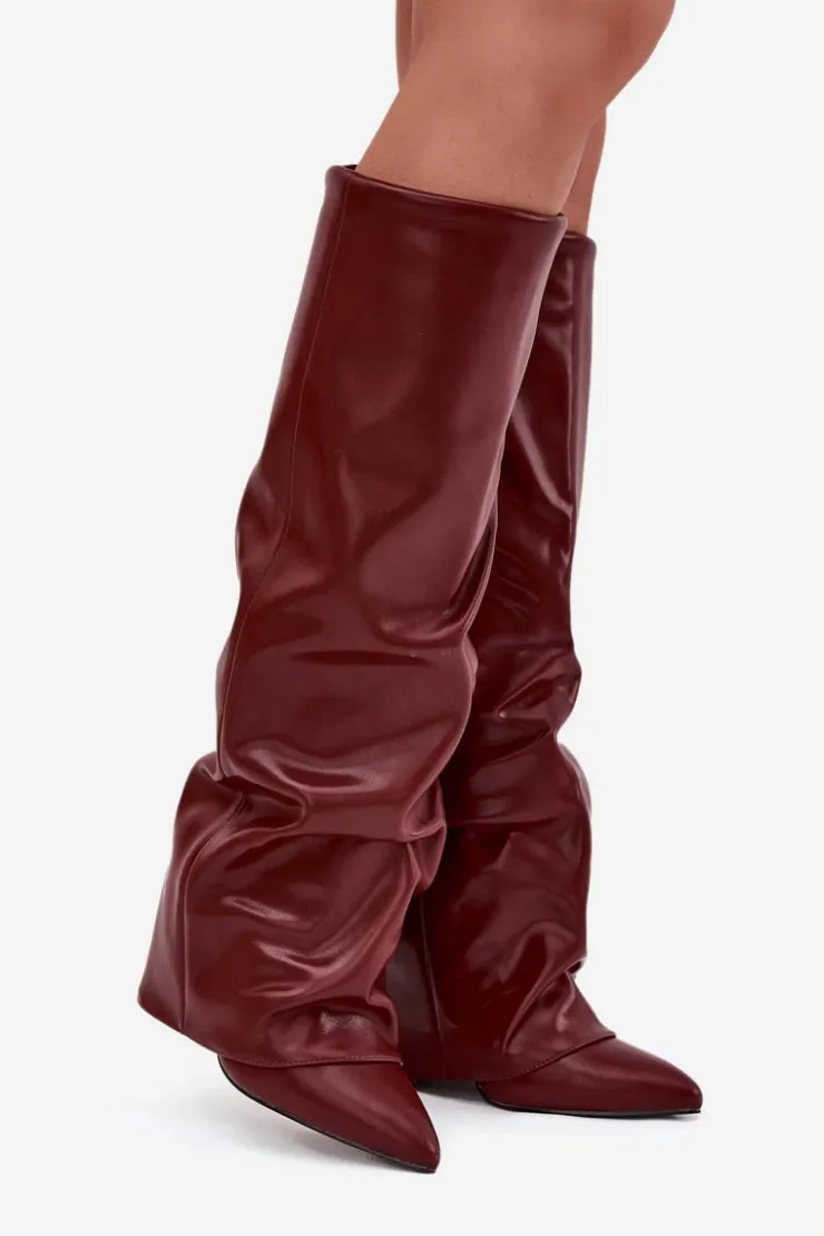 Kozaki damskie z wywiniętą cholewką to prawdziwy must-have na nadchodzący sezon jesienno-zimowy! Wsuwane i osadzone na stabilnym obcasie typu słupek, gwarantują wygodę i pewny krok. Ocieplenie zapewnia komfort w chłodniejsze dni, a wywinięta cholewka, nachodząca na obcas, dodaje im oryginalnego charakteru. Szpiczaste noski podkreślają kobiecy styl, dzięki czemu kozaki świetnie sprawdzą się w efektownych, zimowych stylizacjach. Przy wyborze rozmiaru prosimy sugerować się tabelą rozmiarów.