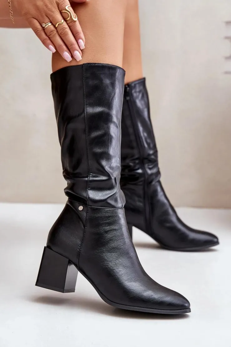 Botki marki Jezzi wykonane z eko skóry to elegancka i stylowa propozycja na chłodniejsze dni. Osadzone na stabilnym obcasie typu słupek, zapewniają wygodę i subtelne podwyższenie. Model wyróżnia się noskami w migdał. Ocieplenie kocem obuwniczym gwarantuje ciepło i komfort, czyniąc te botki idealnym wyborem do codziennych, jak i bardziej formalnych stylizacji. Koniecznie powinnaś je mieć w swojej jesienno-zimowej garderobie! Przy wyborze rozmiaru prosimy sugerować się tabelą rozmiarów.