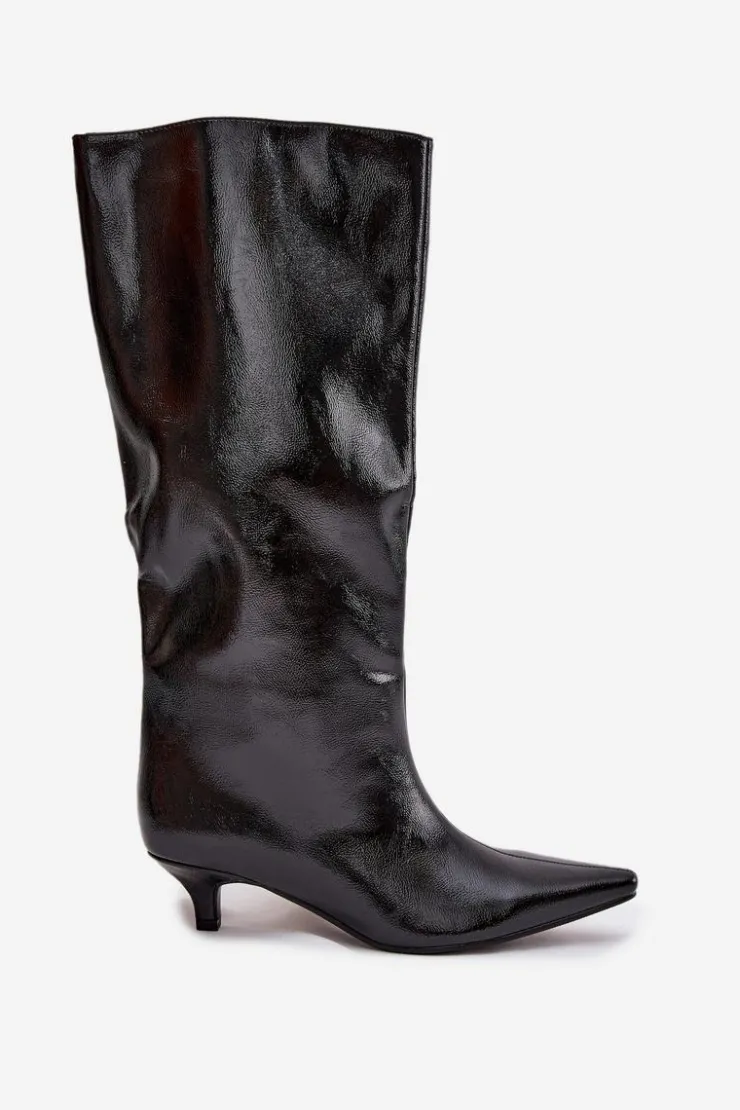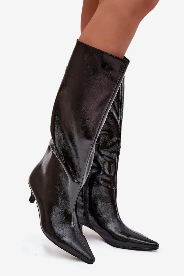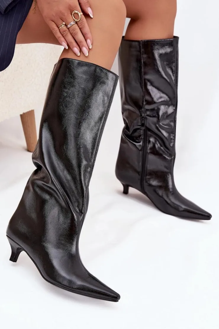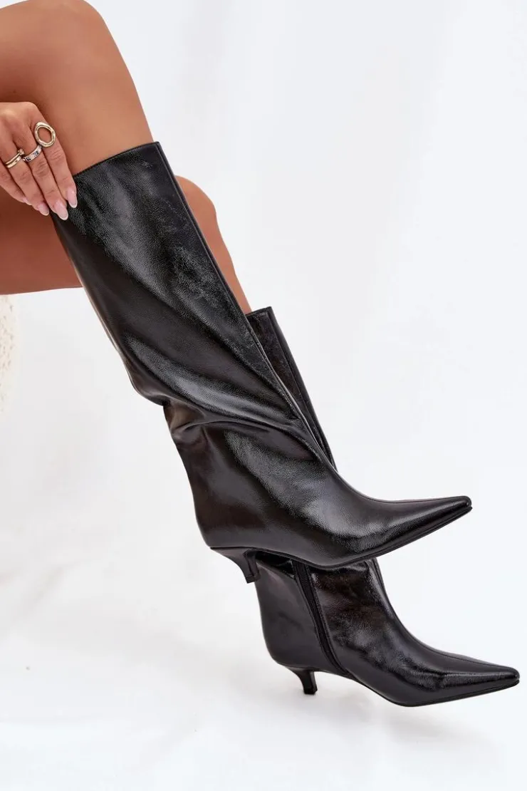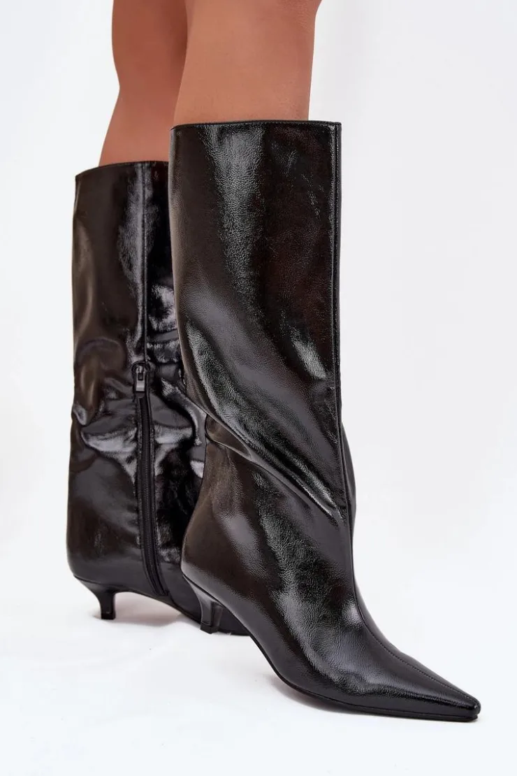 Kozaki damskie wykonane z eko skóry to elegancka propozycja na sezon jesienno-zimowy. Model wsuwany z dodatkowym suwakiem na dole cholewki ułatwia zakładanie. Wnętrze ocieplane kocem obuwniczym zapewnia komfort i ciepło podczas chłodniejszych dni, dzięki czemu buty świetnie sprawdzą się w codziennym użytkowaniu. Szpiczaste noski dodają całości smukłego, kobiecego charakteru, a niski obcas zapewnia wygodę i stabilność przy każdym kroku. To uniwersalne kozaki, które znakomicie uzupełnią zarówno casualowe stylizacje z jeansami, jak i eleganckie zestawy z sukienką czy spódnicą. Przy wyborze rozmiaru prosimy kierować tabelą rozmiarów.
