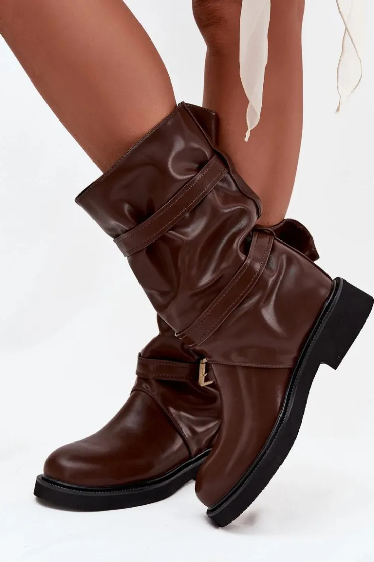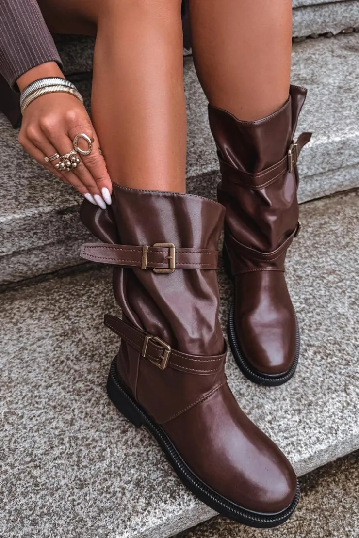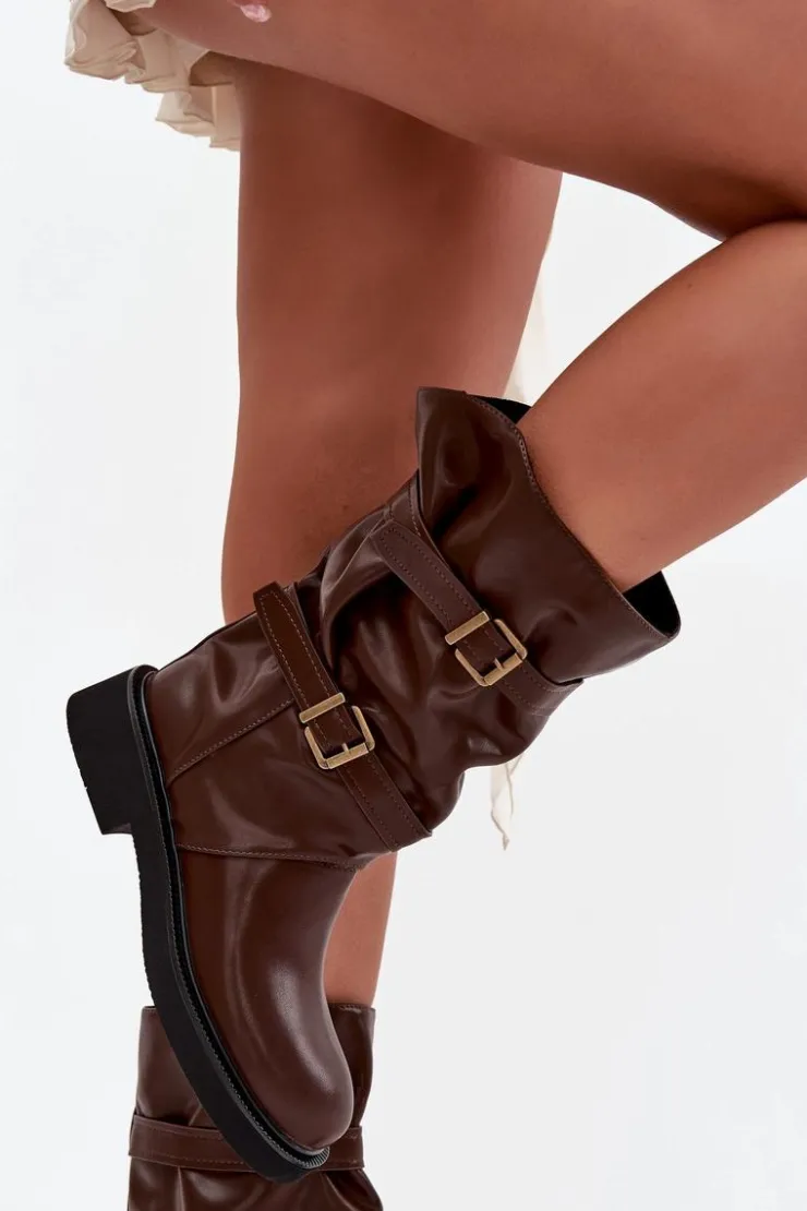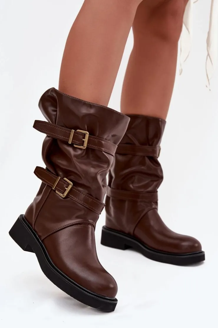 Kozaki damskie z eko skóry to modna i wygodna propozycja na chłodniejsze dni. Wykonane z eko skóry. Osadzone na płaskim obcasie, zapewniają komfort noszenia przez cały dzień, a ich praktyczny, wsuwany fason sprawia, że zakładanie butów jest szybkie i wygodne. Model wyróżnia marszczona cholewka sięgająca do połowy łydki. Całość uzupełniają ozdobne paski z klamrami, wprowadzające modny, nieco rockowy akcent. Te kozaki doskonale sprawdzą się zarówno w codziennych, casualowych zestawach ze spodniami czy legginsami, jak i w połączeniu z sukienką czy spódnicą. Przy wyborze rozmiaru prosimy kierować tabelą rozmiarów.