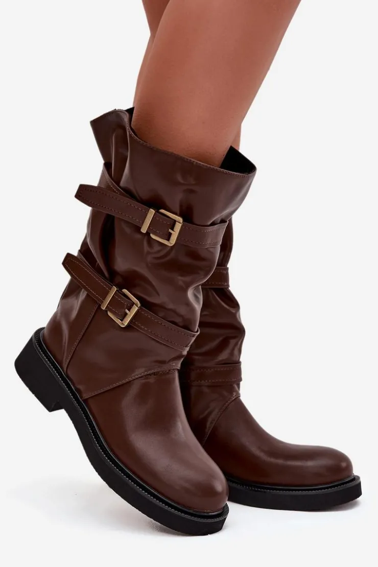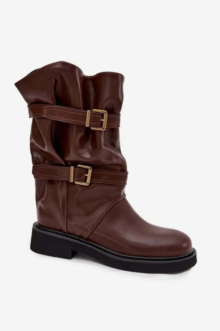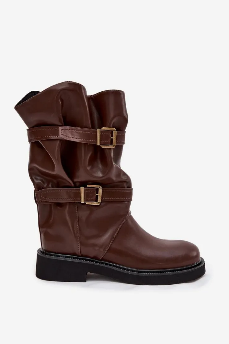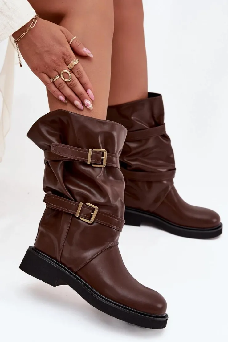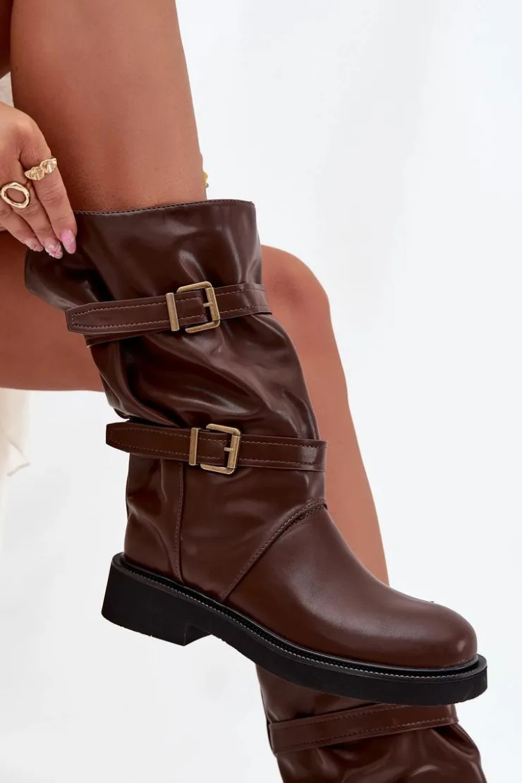 Kozaki damskie z eko skóry to modna i wygodna propozycja na chłodniejsze dni. Wykonane z eko skóry. Osadzone na płaskim obcasie, zapewniają komfort noszenia przez cały dzień, a ich praktyczny, wsuwany fason sprawia, że zakładanie butów jest szybkie i wygodne. Model wyróżnia marszczona cholewka sięgająca do połowy łydki. Całość uzupełniają ozdobne paski z klamrami, wprowadzające modny, nieco rockowy akcent. Te kozaki doskonale sprawdzą się zarówno w codziennych, casualowych zestawach ze spodniami czy legginsami, jak i w połączeniu z sukienką czy spódnicą. Przy wyborze rozmiaru prosimy kierować tabelą rozmiarów.
