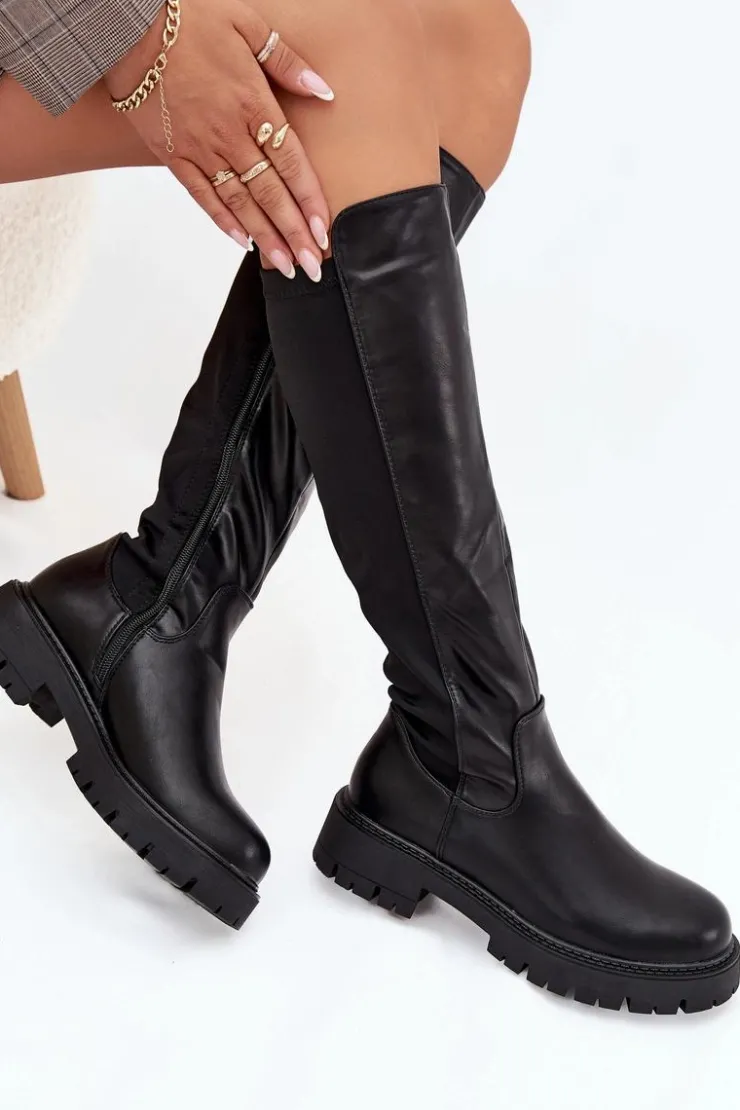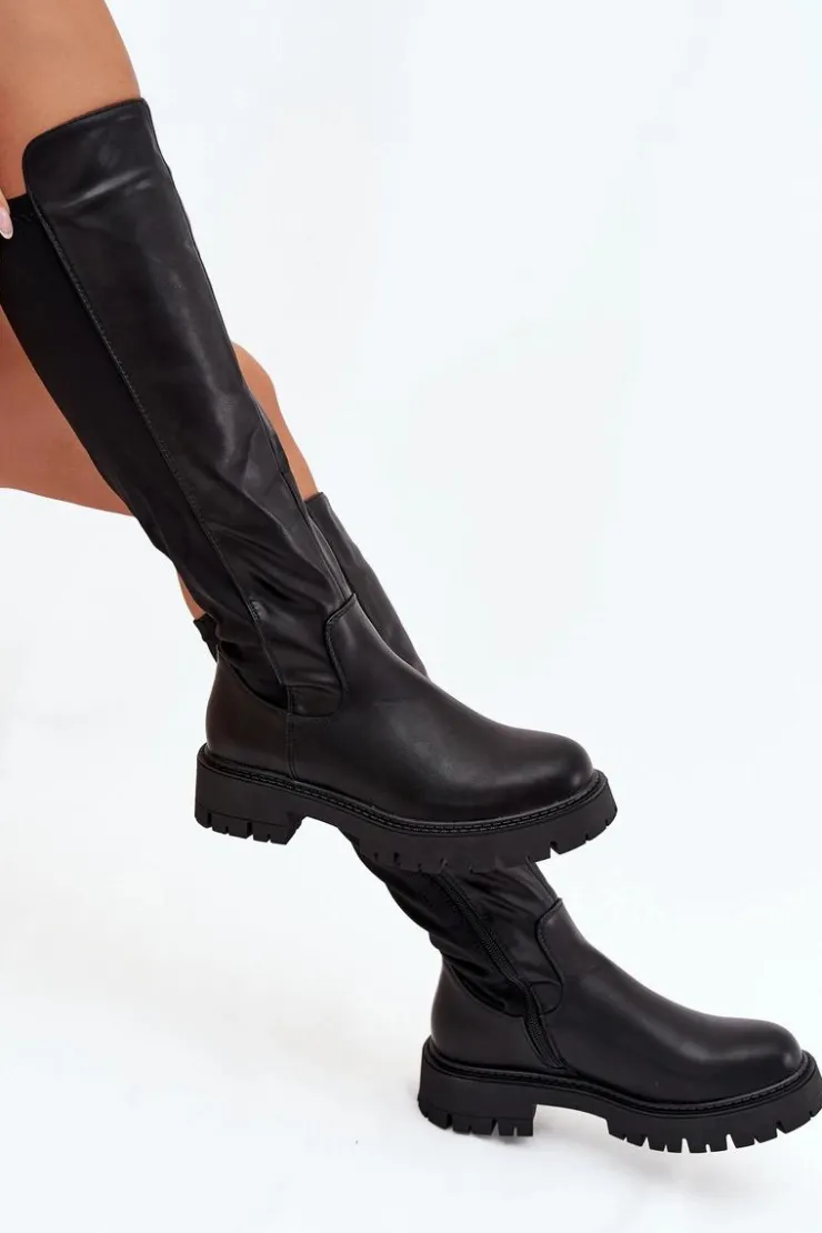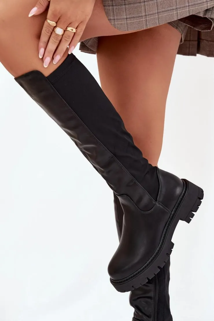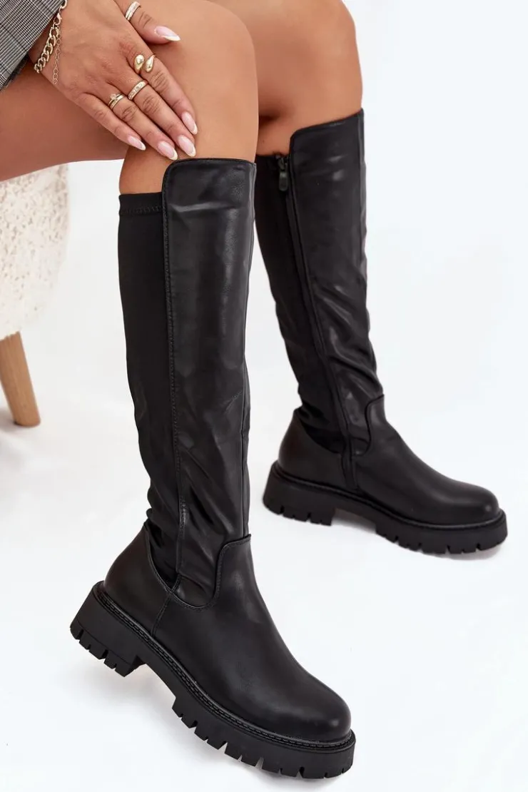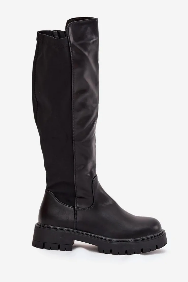 Kozaki damskie wykonane z połączenia eko skóry i materiału tekstylnego to wygodny i uniwersalny model na chłodniejsze dni. Wnętrze ocieplone kocem obuwniczym gwarantuje komfort i ciepło, a niski obcas typu klocek zapewnia stabilność i wygodę podczas codziennego noszenia. Klasyczne, zaokrąglone noski. Model zapinany na zamek ułatwia zakładanie i świetnie dopasowuje się do nogi. To kozaki, które idealnie sprawdzą się zarówno w codziennych, jak i bardziej eleganckich stylizacjach. Przy wyborze rozmiaru prosimy sugerować się tabelą rozmiarów.