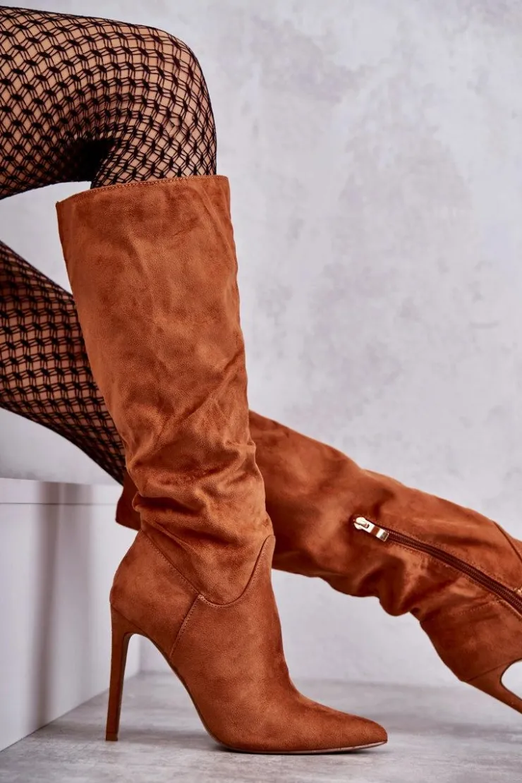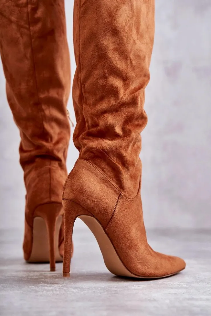 Klasyczne kozaki damskie z cholewką przed kolano. Posiadają delikatne przeszycia. Wykonane z miłego w dotyku eko zamszu. Model został osadzony na obcasie w postaci szpilki. Zapiętek usztywniany. Z boku zapinane na suwak. Wygodny model, który powinien znaleźć się w Twojej szafie! Wykorzystasz je w wielu stylizacjach! Muszą być Twoje! Przy wyborze rozmiaru prosimy sugerować się tabelą rozmiarów.