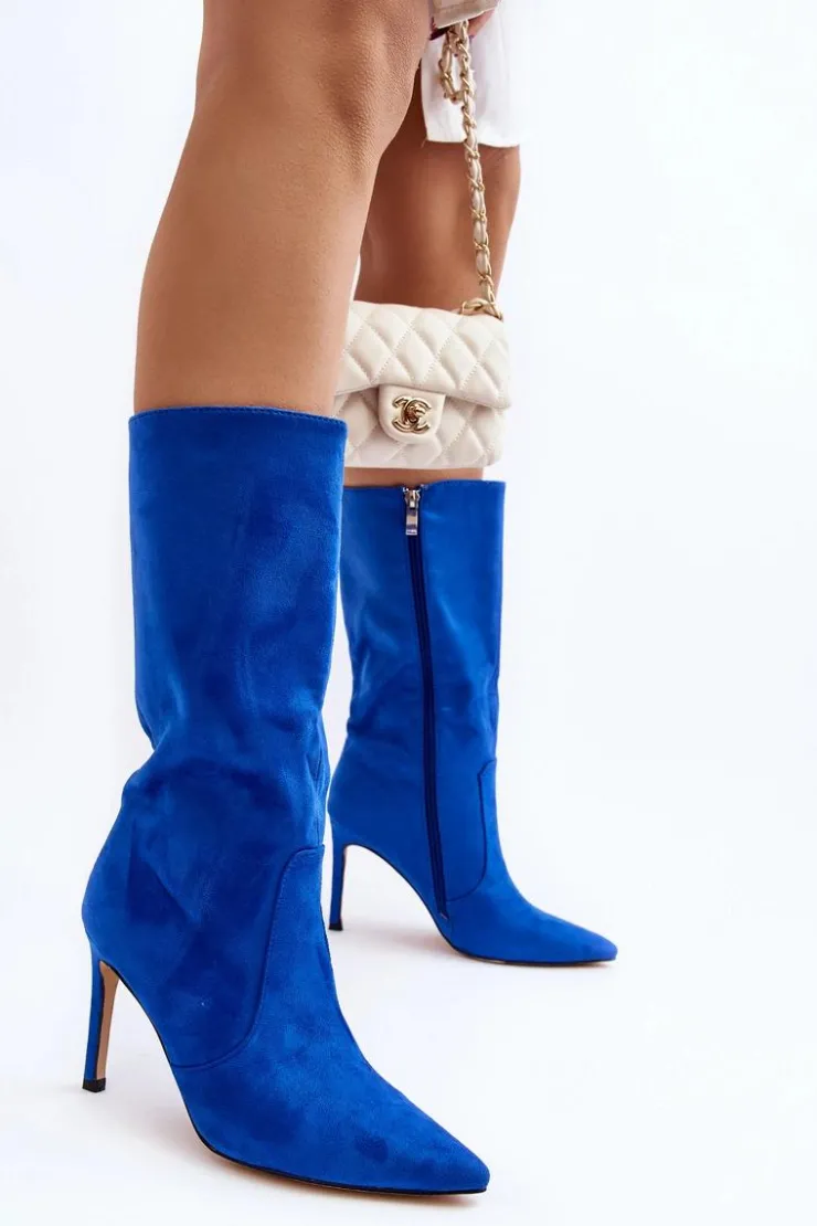 Kozaki damskie wykonane z eko zamszu. Osadzone na zgrabnej szpilce, co dodaje im kobiecego uroku, a jednocześnie gwarantuje elegancję. Ocieplenie w postaci koca obuwniczego zapewnia ciepło i komfort w chłodniejsze dni. Delikatnie szpiczaste noski optycznie wysmuklają nogi, dodając subtelnego wdzięku. Suwak na całej długości cholewki ułatwia zarówno zakładanie, jak i zdejmowanie butów. Ten wyjątkowy model zasługuje na swoje miejsce w Twojej garderobie! Przy wyborze rozmiaru prosimy sugerować się tabelą rozmiarów.