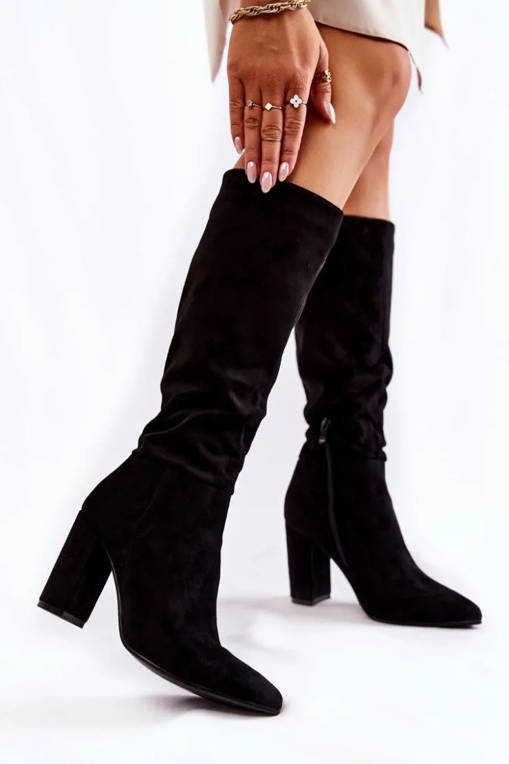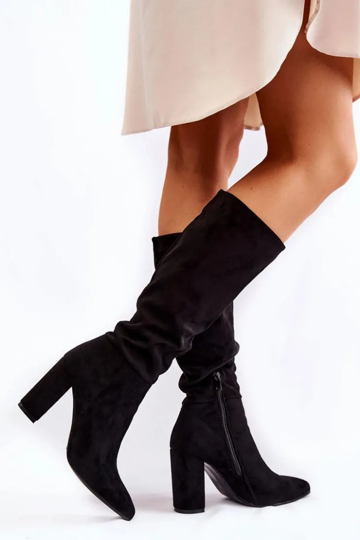 Kozaki damskie o klasycznym fasonie świetnie sprawdzą się w tym sezonie! Model z noskiem w szpic oraz obcas w postaci słupka wysmukli stopę. Zapinane na suwak w dolnej części cholewki. Kozaki nie posiadają ocieplenia. Fason ten posiada usztywniany zapiętek. Kozaki te świetnie sprawdzą się nie tylko do sukienek, ale także do spodni czy spódniczek. Przy wyborze rozmiaru prosimy sugerować się tabelą rozmiarów.