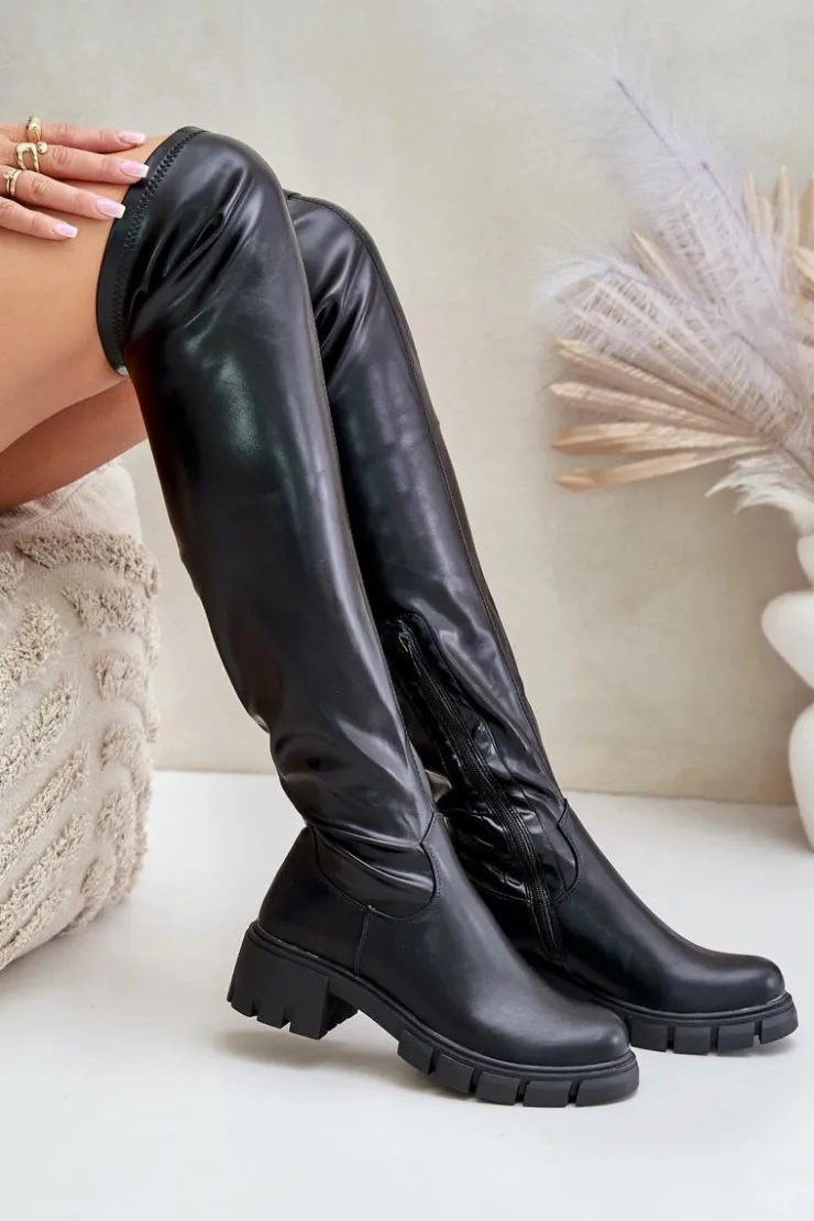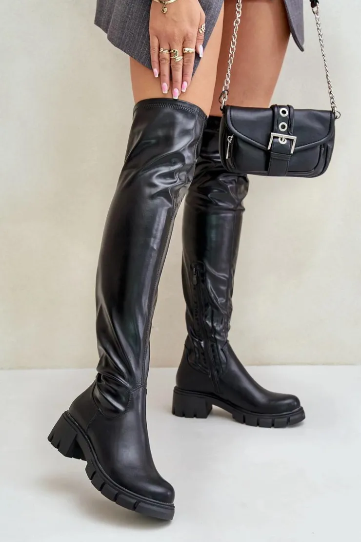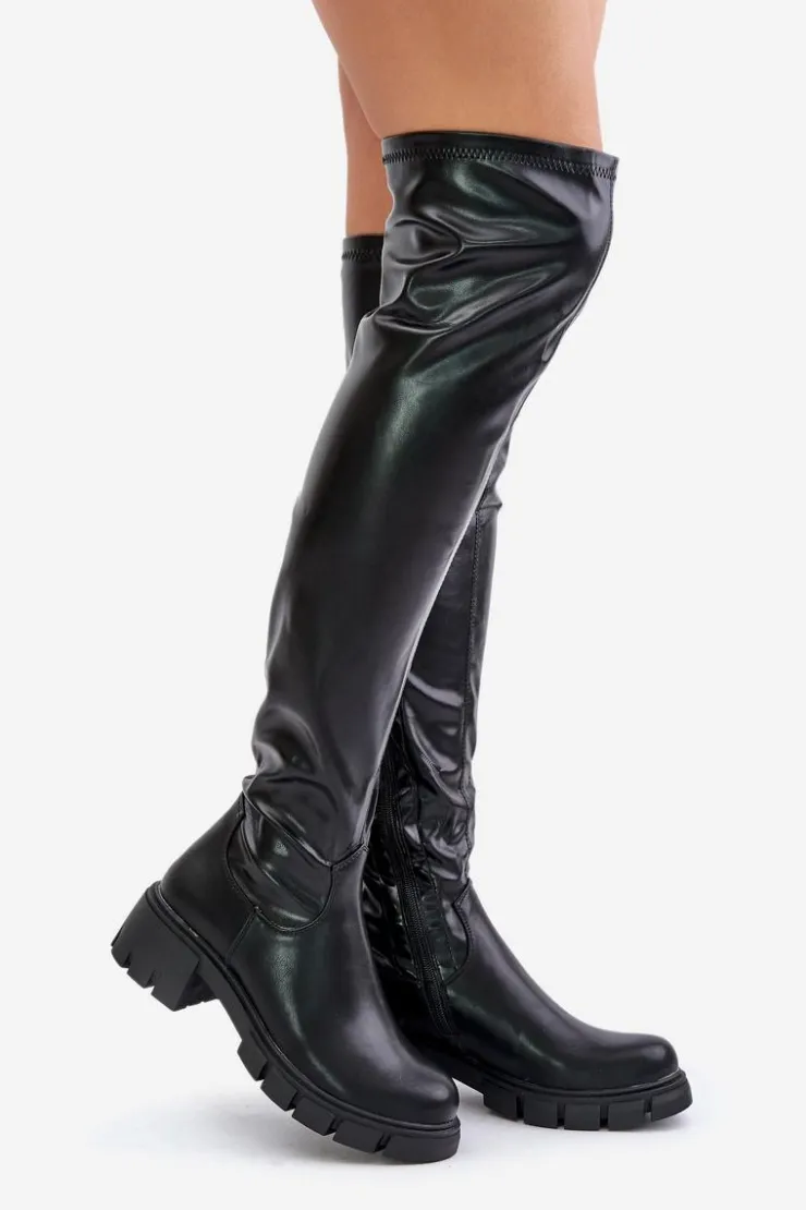 Kozaki wykonane z eko skóry to stylowy wybór na chłodniejsze dni. Osadzone na płaskim obcasie, gwarantują wygodę podczas codziennego noszenia. Model charakteryzuje się zaokrąglonymi noskami oraz cholewką sięgającą za kolano, dzięki czemu świetnie komponuje się z sukienkami i spódnicami, dodając elegancji każdej stylizacji. Wnętrze ocieplane jest wyłącznie na wysokości stopy, zapewniając komfort termiczny tam, gdzie jest najbardziej potrzebny. Idealne na co dzień, jak i na specjalne okazje, te kozaki łączą w sobie klasyczny design i praktyczność. Przy wyborze rozmiaru prosimy sugerować się tabelą rozmiarów.