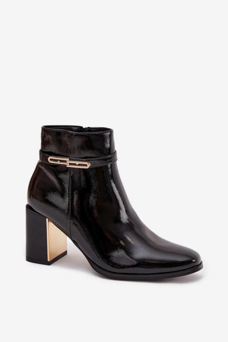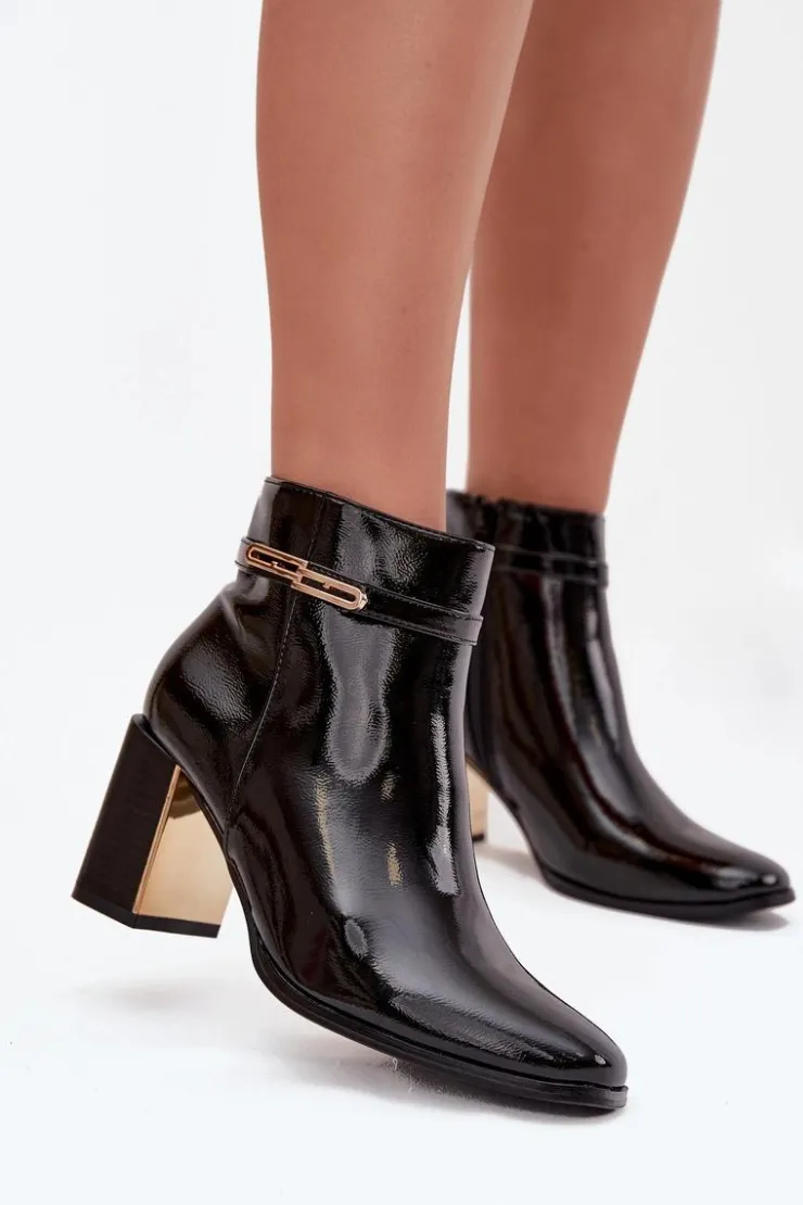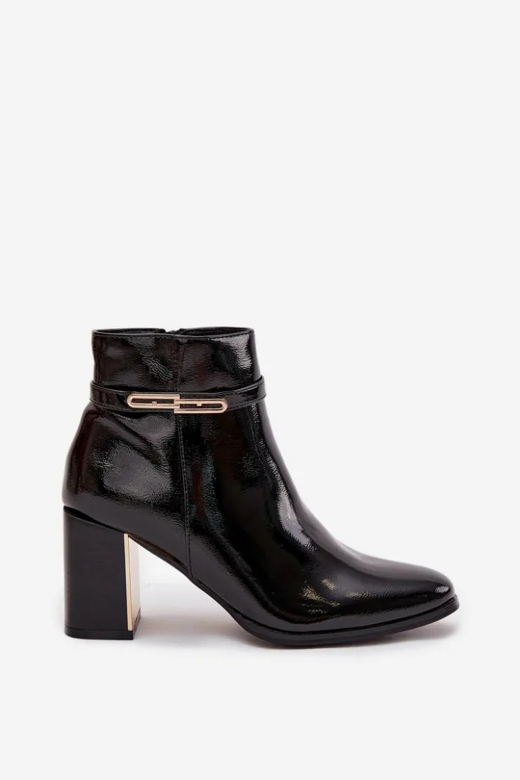 Lakierowane botki na słupku z paskiem czarne Dorelia