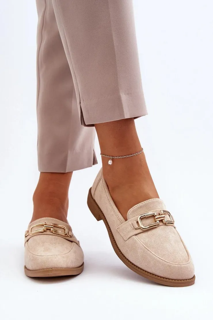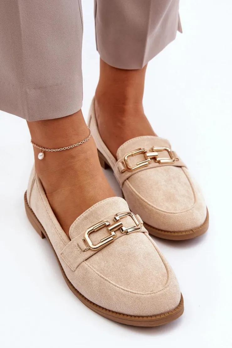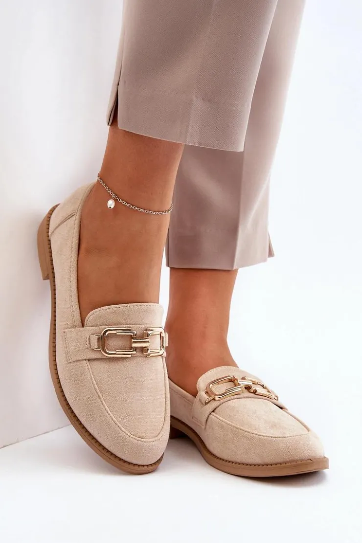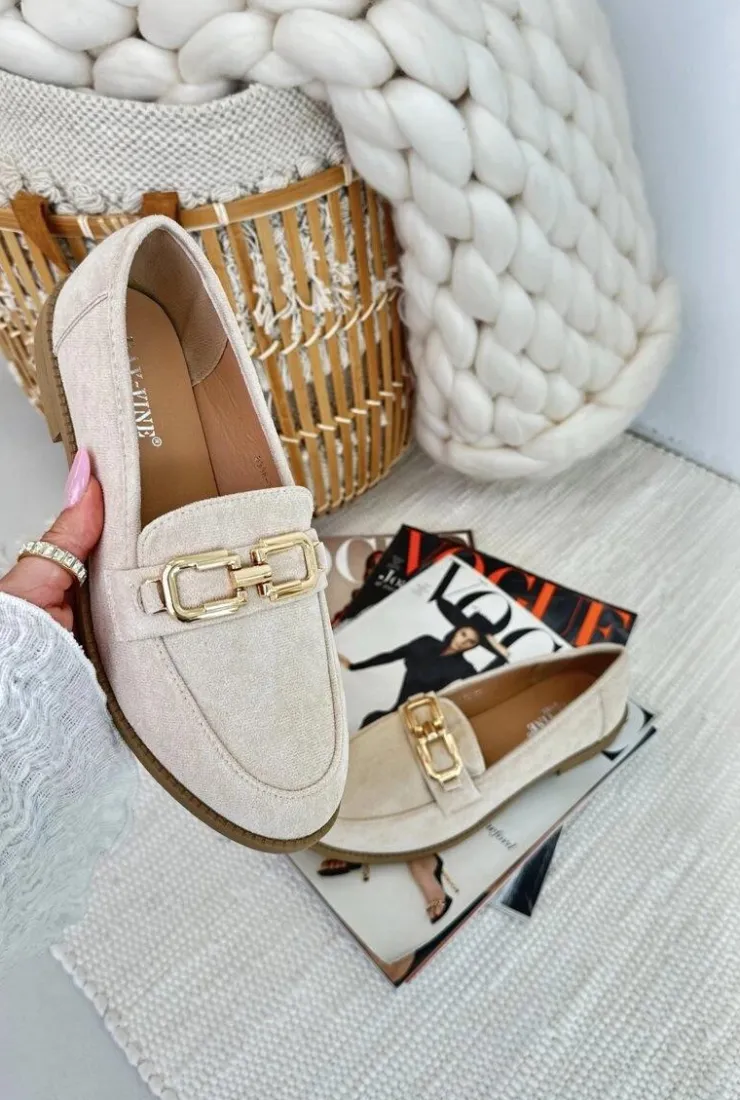 Mokasyny damskie wykonane z przyjemnego w dotyku eko zamszu. Osadzone na płaskim obcasie. Miękka wkładka zapewni komfort podczas noszenia nawet przez cały dzień. Przód ozdobiony jest subtelnym detalem. Noski w kształcie migdała dodają im klasycznego uroku. Fason ten idealnie będzie pasować do różnych stylizacji! Przy wyborze rozmiaru prosimy sugerować się tabelą rozmiarów.