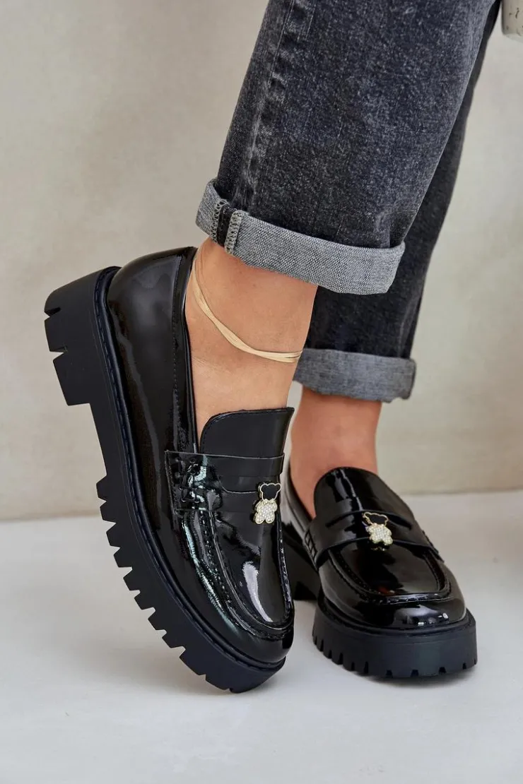 Mokasyny damskie z eko skóry to komfortowy wybór, który łączy elegancję z oryginalnym akcentem. Zaokrąglone noski zapewniają wygodę, a model wyróżnia się uroczą przypinką w kształcie misia na pasku z przodu, dodając zabawnego i unikalnego charakteru. To świetna propozycja na casualowe stylizacje, które potrzebują odrobiny delikatności i świeżości. Przy wyborze rozmiaru prosimy sugerować się tabelą rozmiarów.
