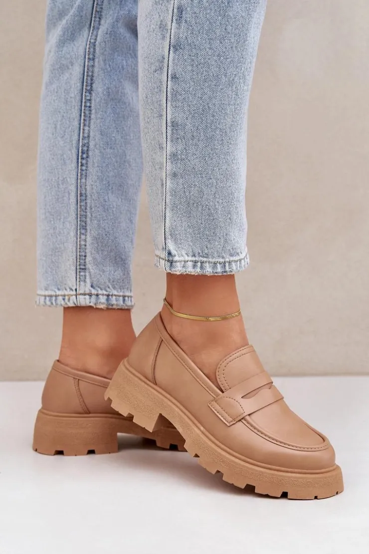 Gładkie mokasyny damskie z eko skóry to klasyka, która nigdy nie wychodzi z mody. Wykonane z eko skóry. Osadzone na płaskim obcasie i platformie, zapewniają wygodę i stabilność przez cały dzień. Ich ponadczasowy fason sprawia, że świetnie komponują się z różnorodnymi stylizacjami, zarówno casualowymi, jak i bardziej formalnymi. Przy wyborze rozmiaru prosimy sugerować się tabelą rozmiarów.
