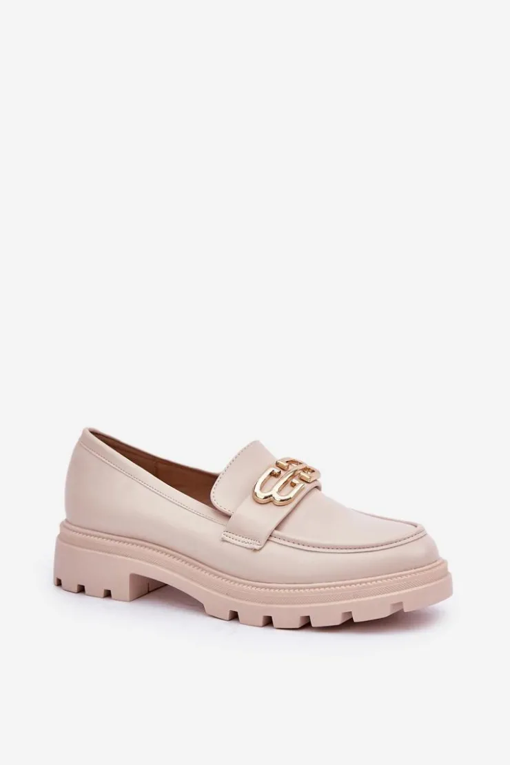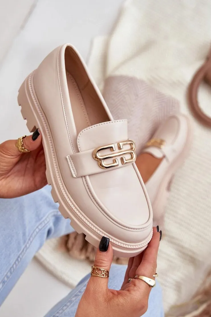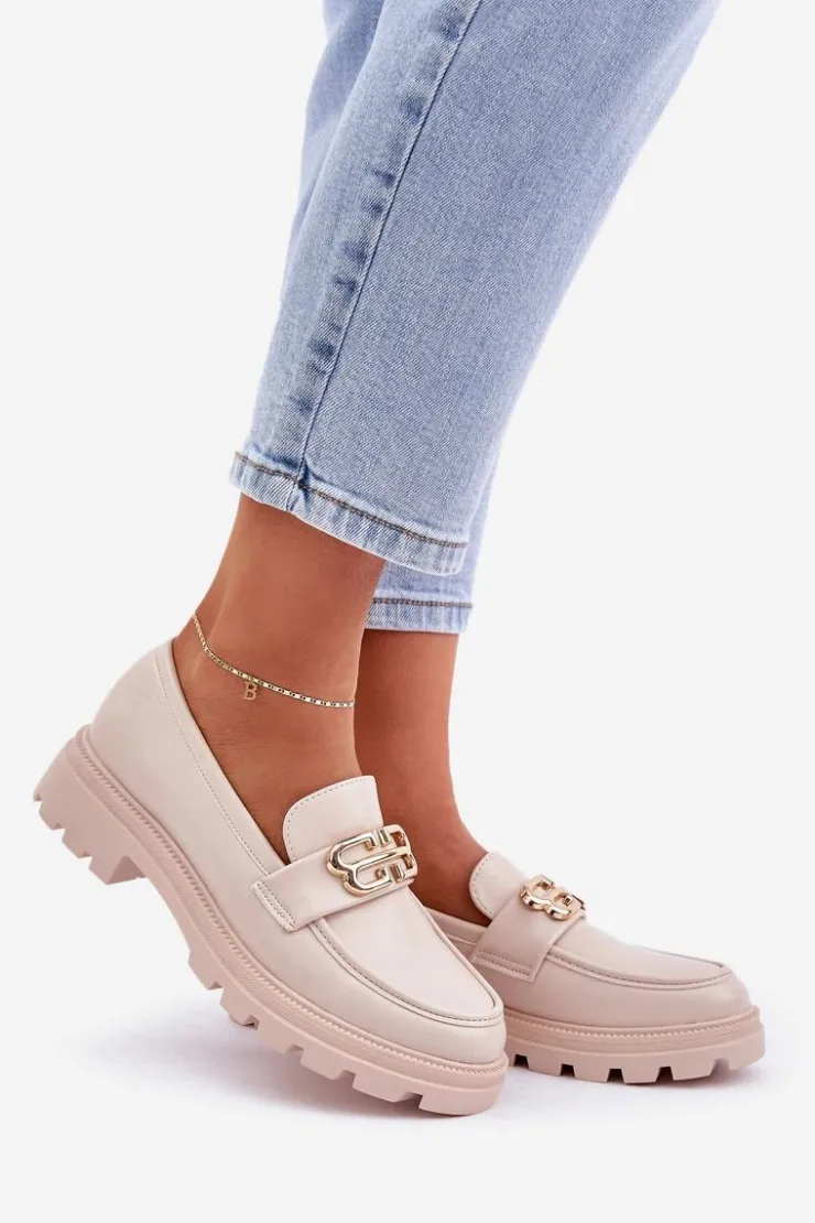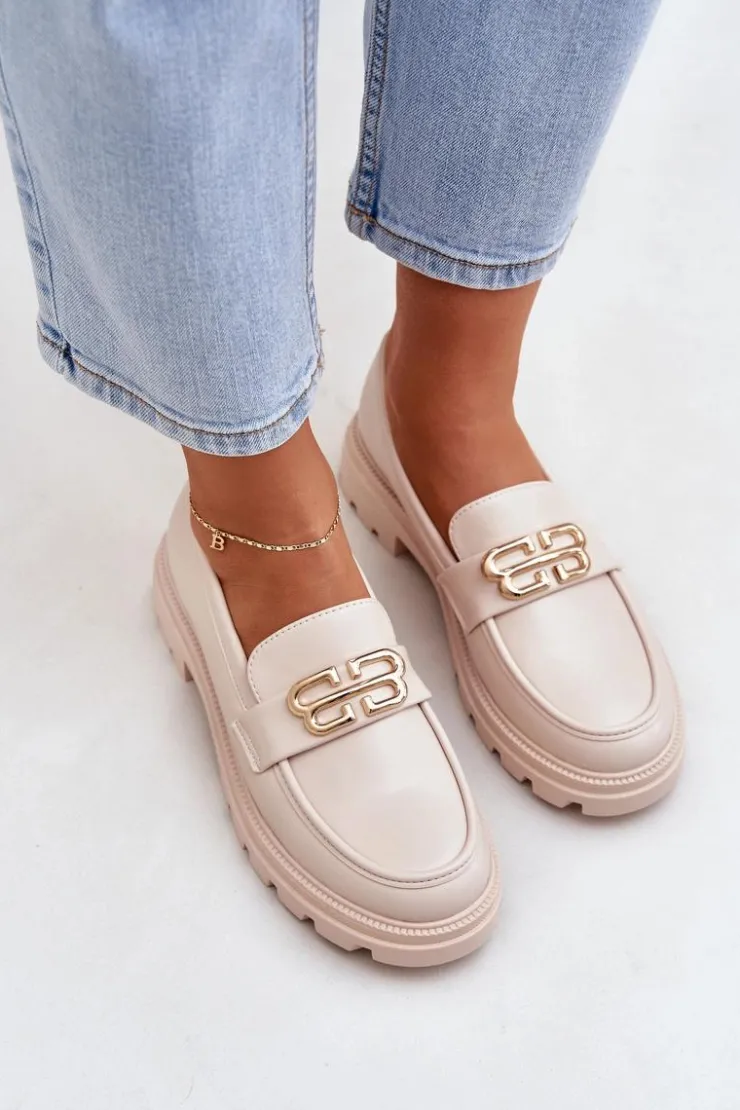 Mokasyny damskie wykonane z eko skóry. Osadzone na płaskim obcasie. Model ten wyróżnia się złotym detalem, który nadaje elegancji. Dzięki miękkiej wkładce mokasyny są wyjątkowo komfortowe, zapewniając wygodę noszenia przez cały dzień. Te mokasyny będą doskonałym wyborem dla kobiet, które cenią elegancki i jednocześnie praktyczny styl. Przy wyborze rozmiaru prosimy sugerować się tabelą rozmiarów.
