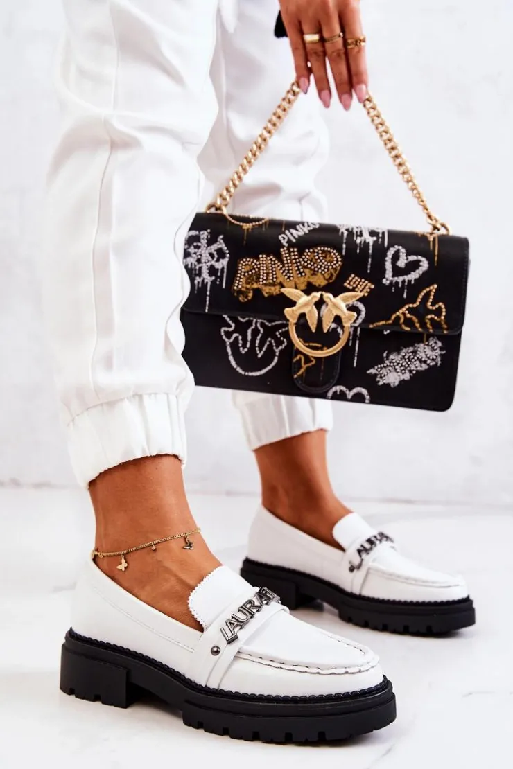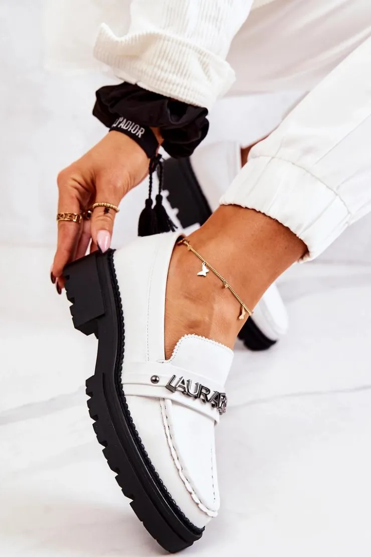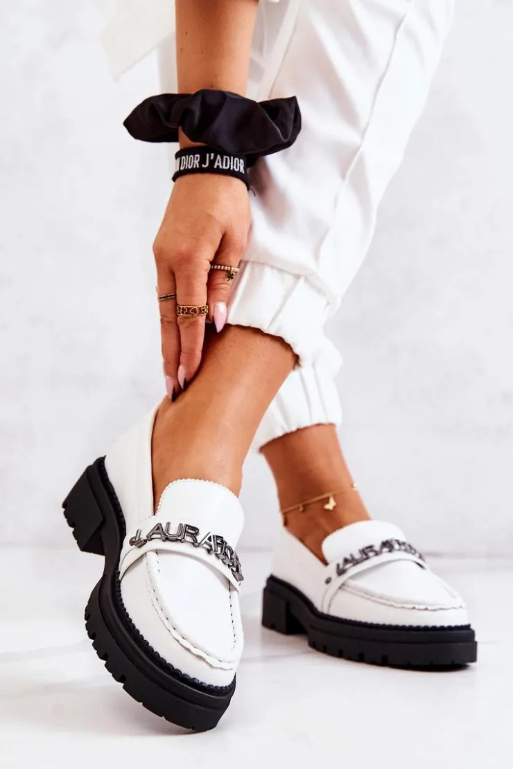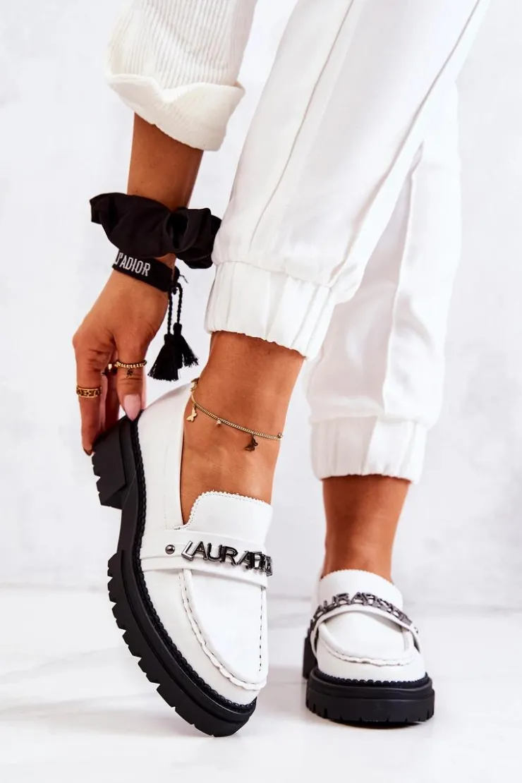 Klasyczne półbuty w stylu przepięknych loaferów marki Laura Fiore! Buty zostały wykonane z wysokiej jakości eko skóry. Charakterystyczny paseczek z przesuwanymi literkami Laura Fiore wygląda naprawdę cudnie. Półbuty posiadają wysoką podeszwę oraz obcas, który uniesie naszą sylwetkę. Miękka, skórzana wkładka zadba o wygodę podczas noszenia. Przy wyborze rozmiaru prosimy sugerować się tabelą rozmiarów.
