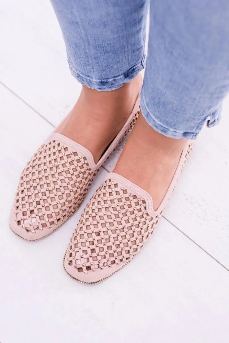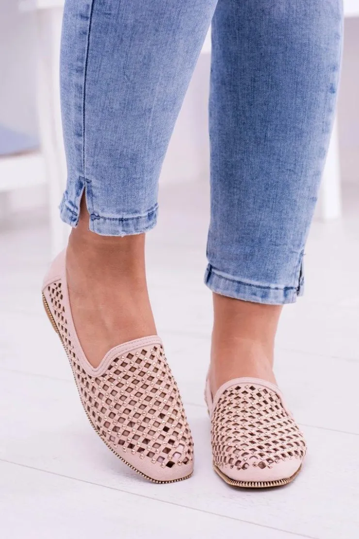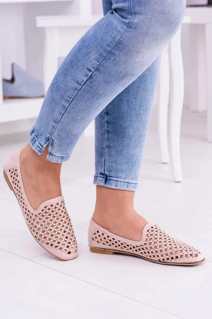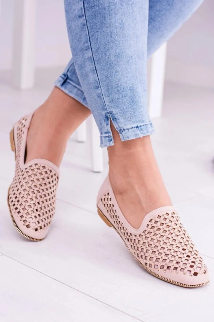 Boto Mokasyny Damskie Zamszowe|Baleriny Klasyczne*Lu Boo Różowe Ażurowe Baleriny Lordsy Ćwieki Carmar