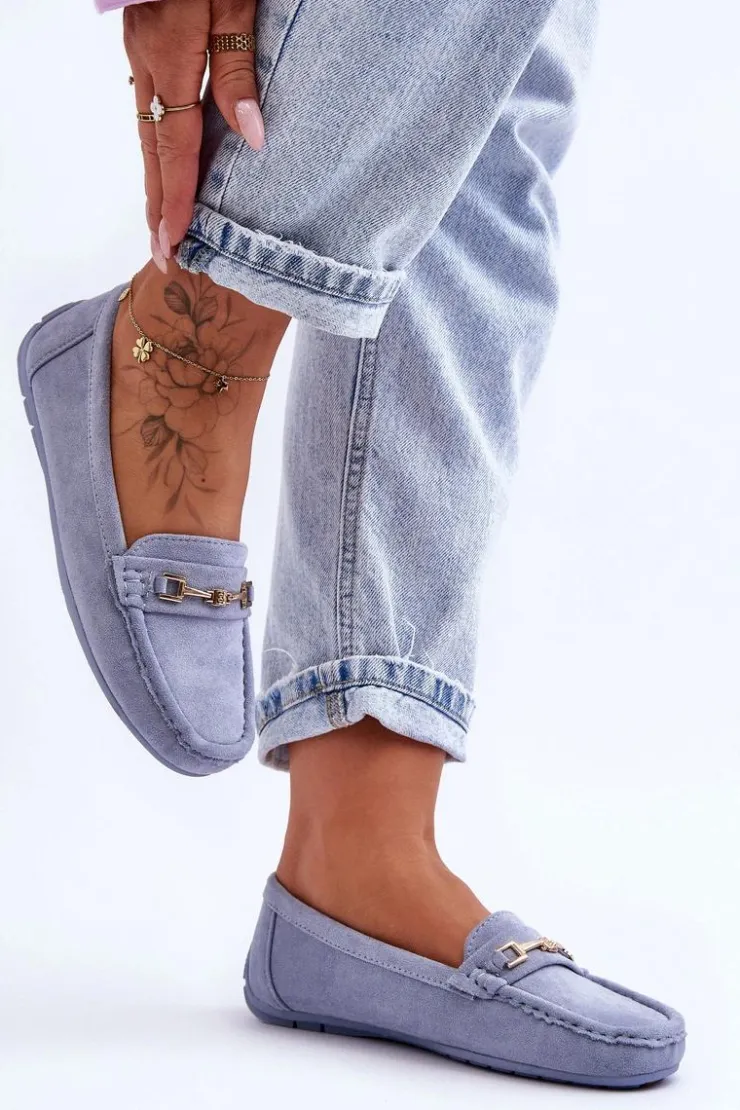 Damskie mokasyny są idealne na wiele okazji! Zostały wykonane z miłego w dotyku eko zamszu. Model ten posiada na przodzie ozdobę z tworzywa sztucznego. Mokasyny osadzono na antypoślizgowej podeszwie. Miękka wkładka z eko skóry zapewni komfort podczas użytkowania obuwia. Dodatkowo jest delikatnie perforowana. Przy wyborze rozmiaru prosimy sugerować się tabelą rozmiarów.