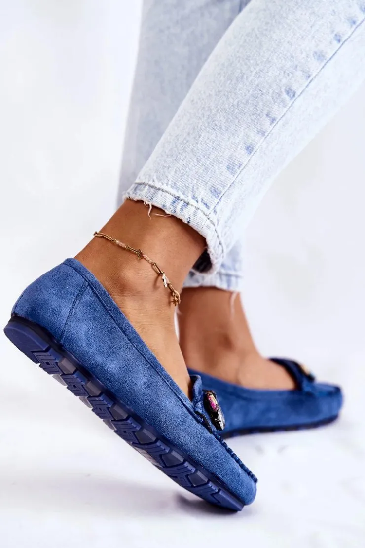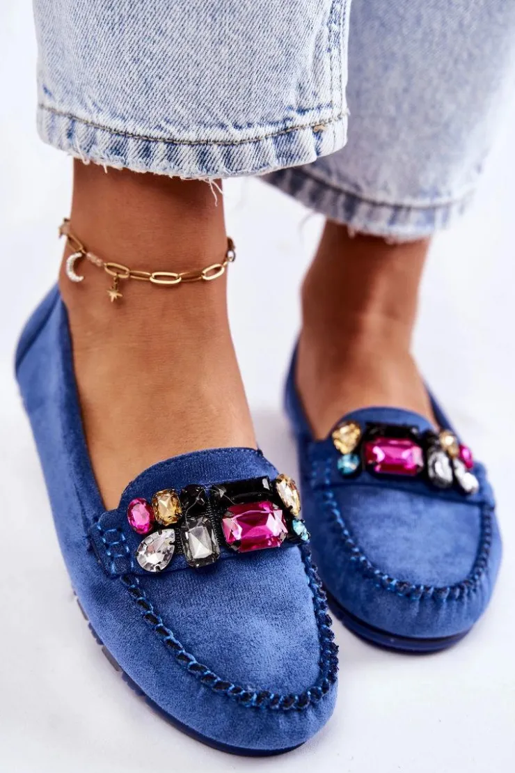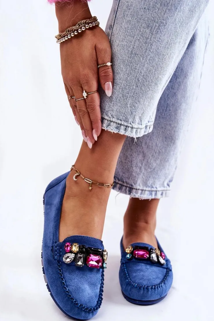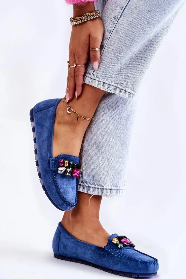 Damskie mokasyny zostały wykonane z miłego w dotyku eko zamszu. Na przodzie znajdują się ozdobne kamienie. Mokasyny zostały osadzone na delikatnej platformie, z antypoślizgową podeszwą. Zapiętek jest delikatnie usztywniany. Miękka wkładka jest dodatkowo perforowana i wykonana z naturalnej skóry. Świetny model do wielu stylizacji! Przy wyborze rozmiaru prosimy sugerować się tabelą rozmiarów.