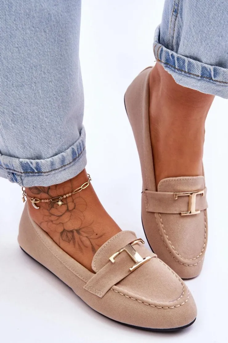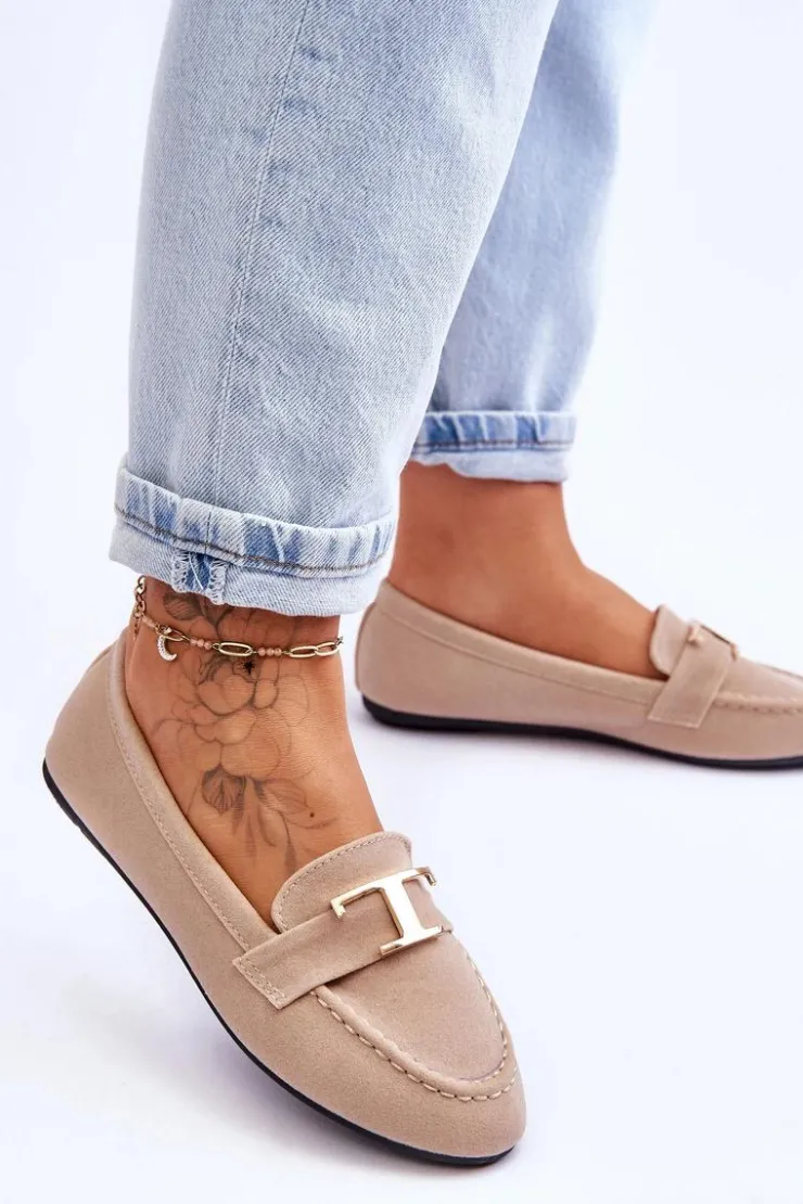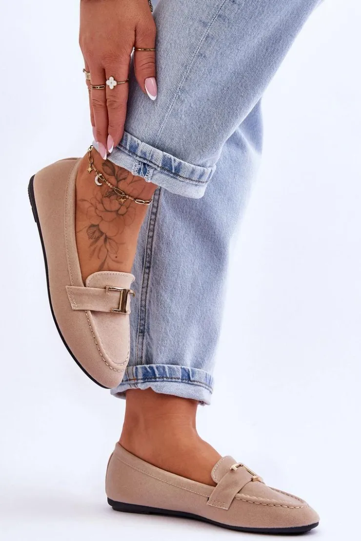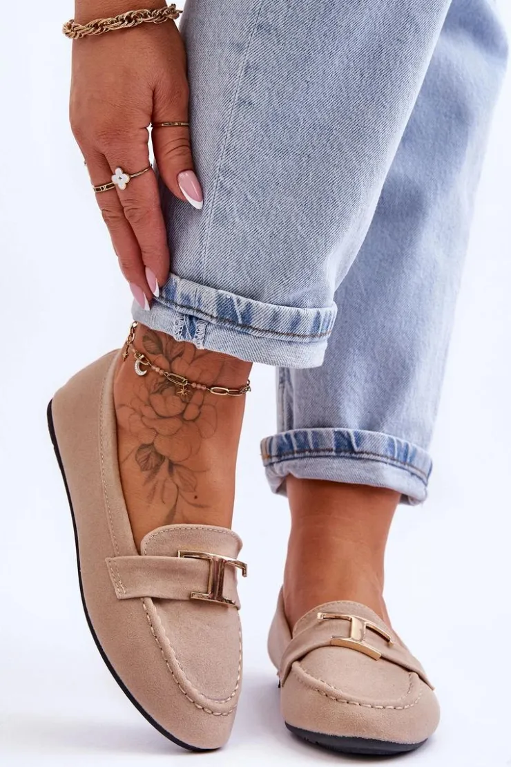 Klasyczne, wsuwane mokasyny damskie z pewnością sprawdzą się w wielu stylizacjach! To model, który powinien znaleźć się w Twojej szafie! Mokasyny posiadają pasek z ozdobą z tworzywa sztucznego. Miękka wkładka została wykonana z eko skóry i jest delikatnie perforowana. Mokasyny osadzono na płaskim obcasie. Przy wyborze rozmiaru prosimy sugerować się tabelą rozmiarów.