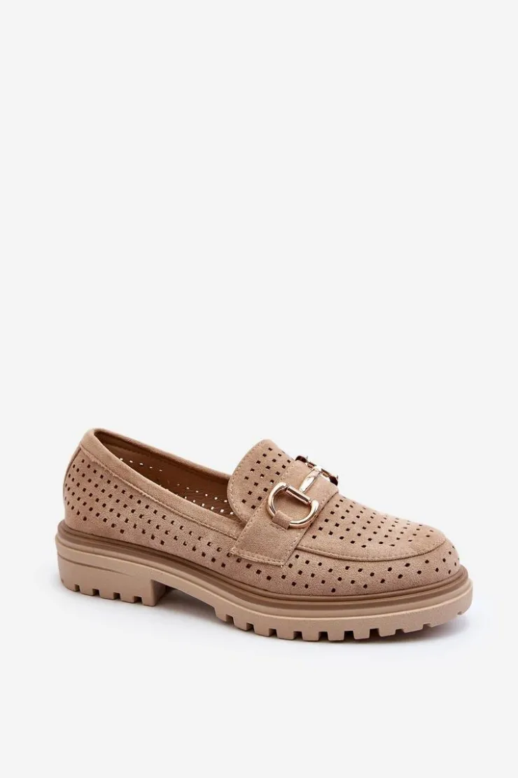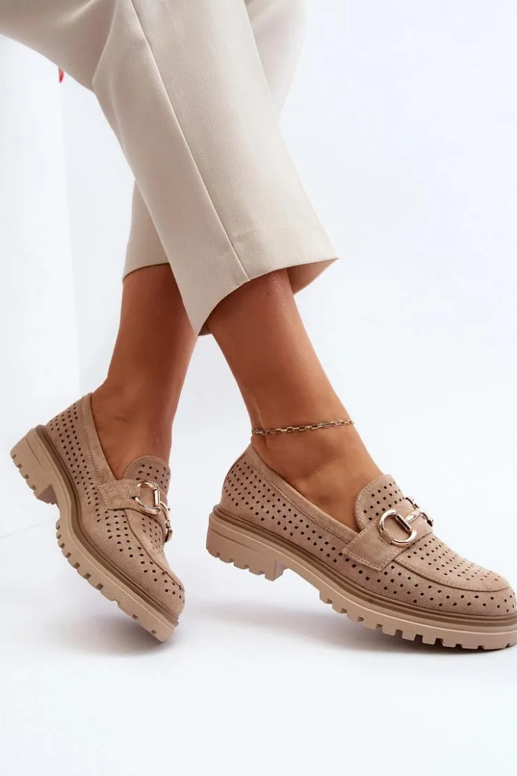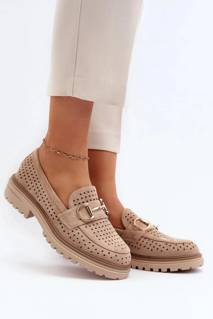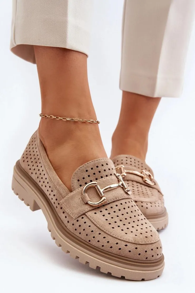 Boto Mokasyny Damskie Zamszowe*Mokasyny Damskie Ażurowe Z Ozdobą Beżowe Talesse
