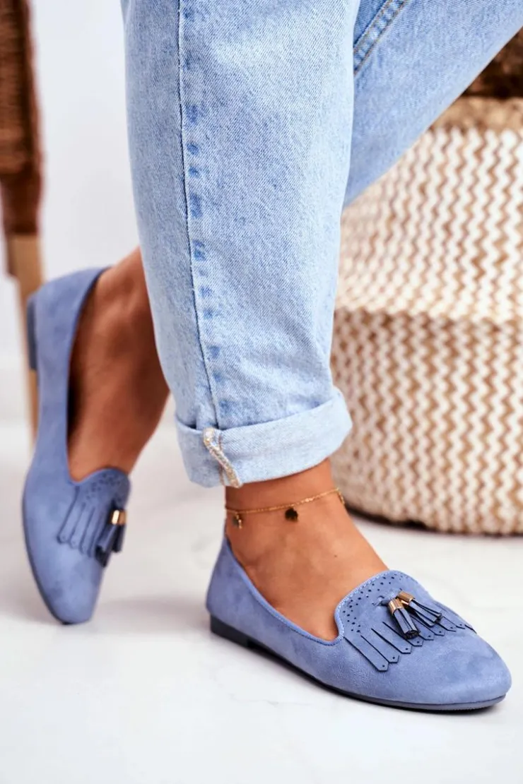Boto Mokasyny Damskie Zamszowe*Mokasyny Damskie Niebieskie Lordsy Frędzle Therese