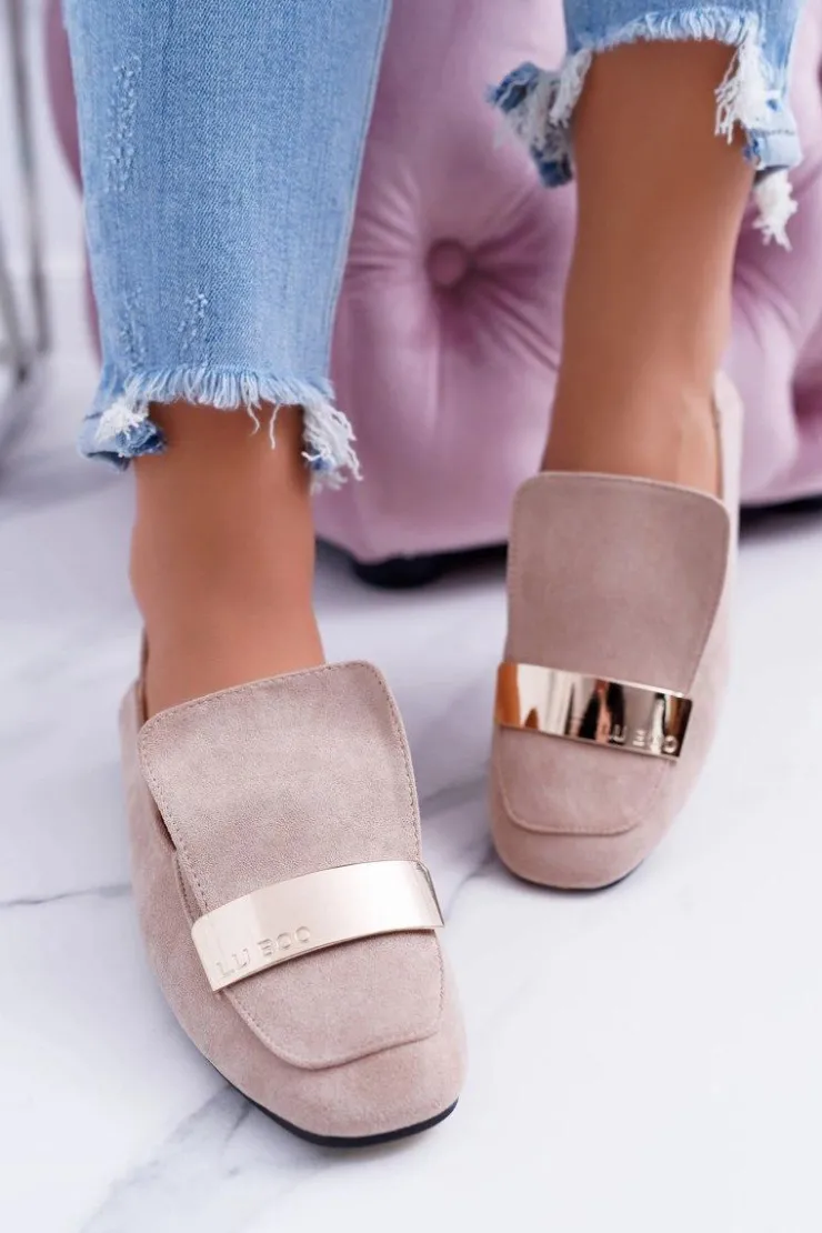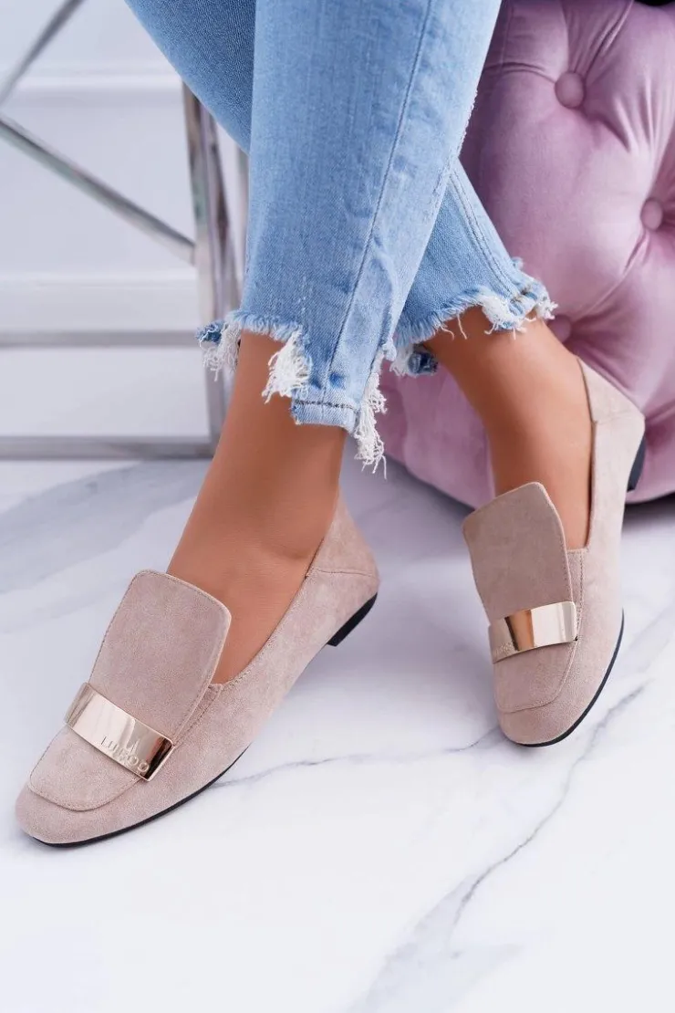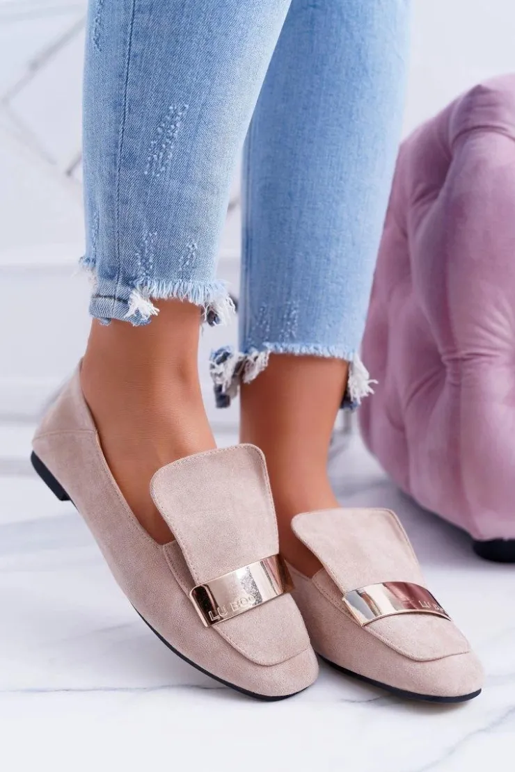 Boto Mokasyny Damskie Zamszowe*Mokasyny Damskie Z Blaszką Złote Lordsy Beż Lu Boo Harlem