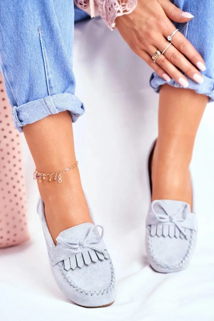 Boto Mokasyny Damskie Zamszowe*Mokasyny Damskie Zamszowe Błękitne Velucci