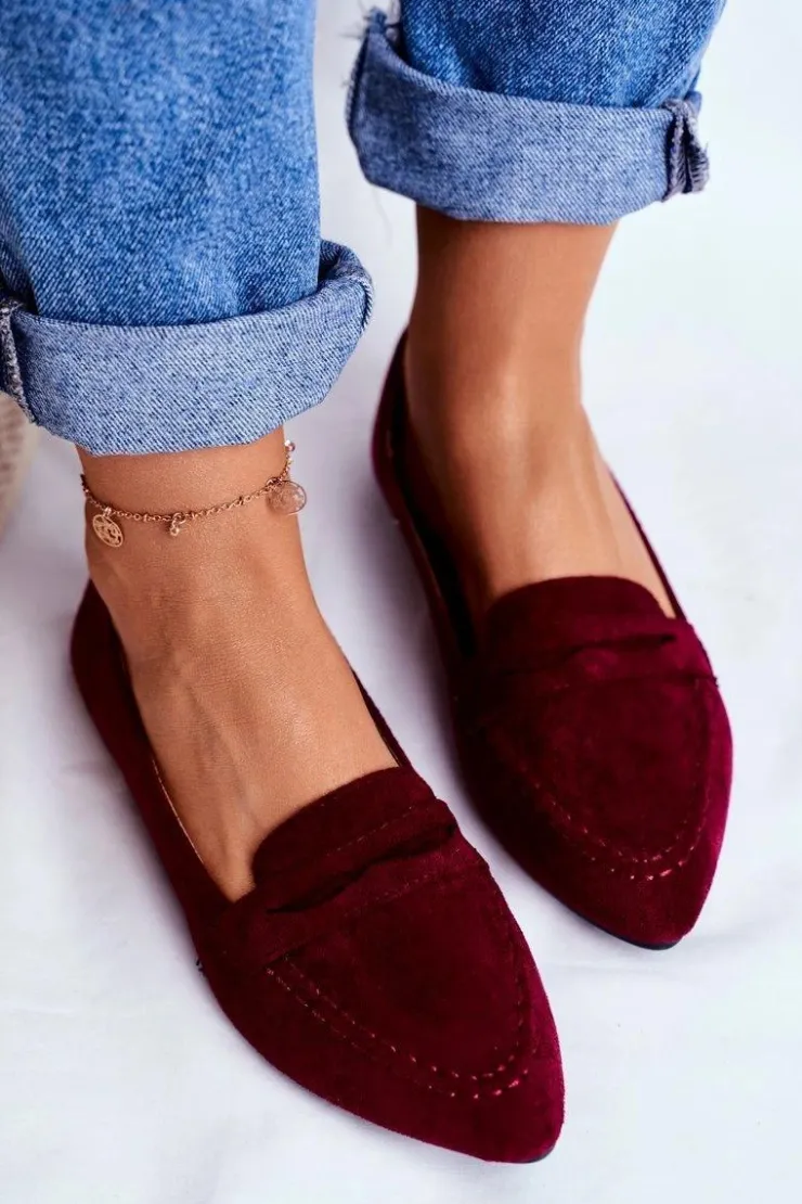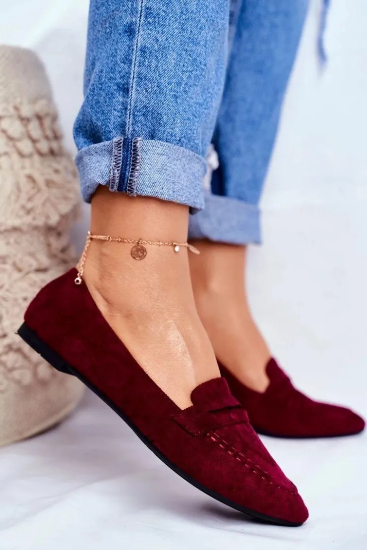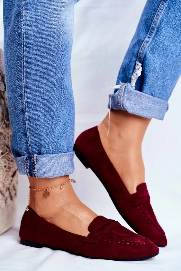 Boto Mokasyny Damskie Zamszowe*Mokasyny Damskie Zamszowe CH-1M6 Bordowe Laveria