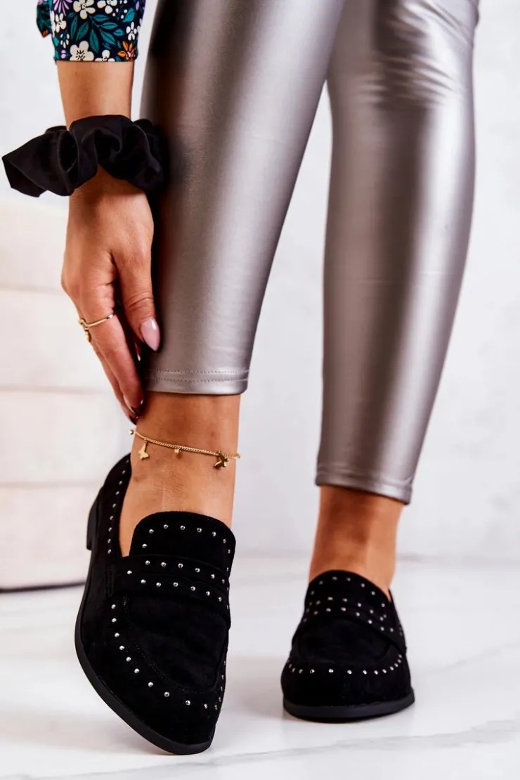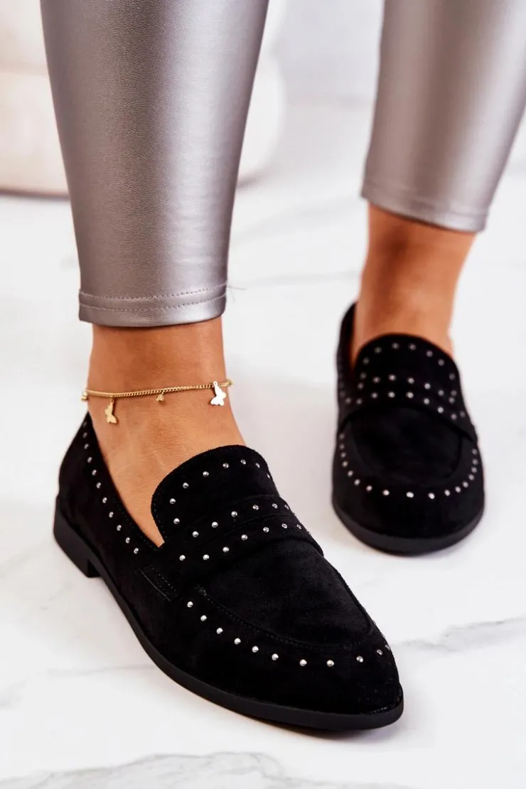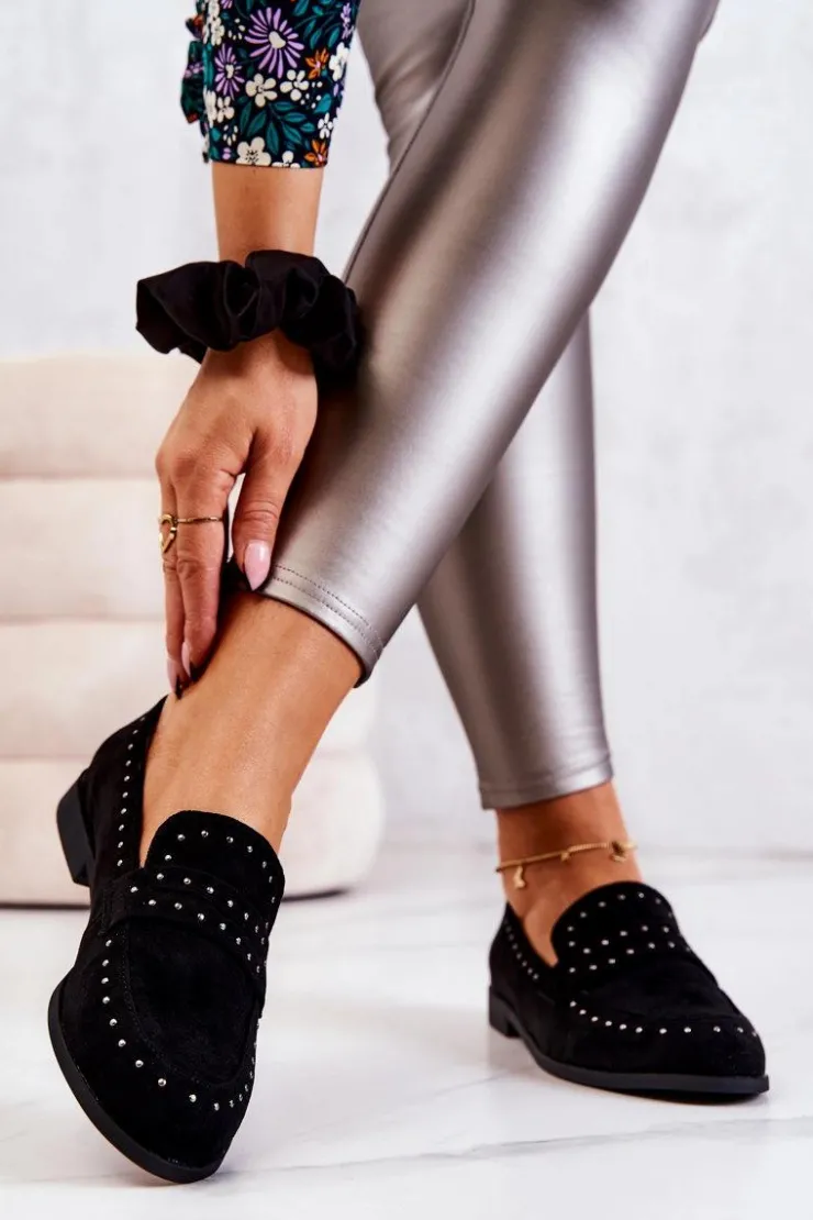 Boto Mokasyny Damskie Zamszowe*Zamszowe Mokasyny Z Dżetami La.Fi 210016B-SU Czarne