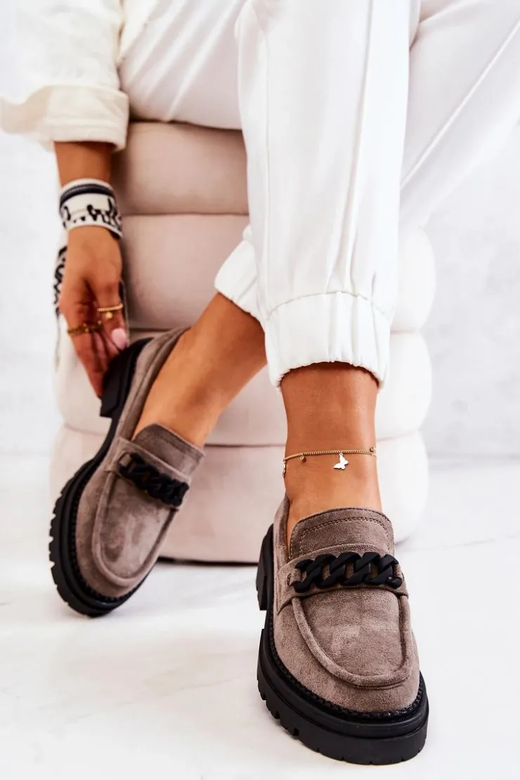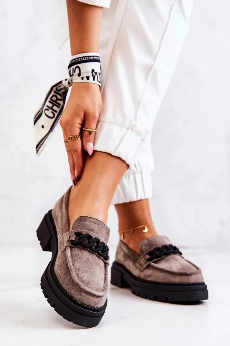 Klasyczne półbuty w stylu przepięknych loaferów marki Laura Fiore! Buty zostały wykonane z wysokiej jakości zamszowej eko skóry. Charakterystyczne zdobienie w postaci łańcucha sprawi, że stworzymy z nimi wiele wspaniałych stylizacji. Posiadają wysoką podeszwę oraz obcas, który uniesie naszą sylwetkę. Miękka wykonana z naturalnej skóry wkładka zadba o komfort podczas użytkowania obuwia. Przy wyborze rozmiaru prosimy sugerować się tabelą rozmiarów.